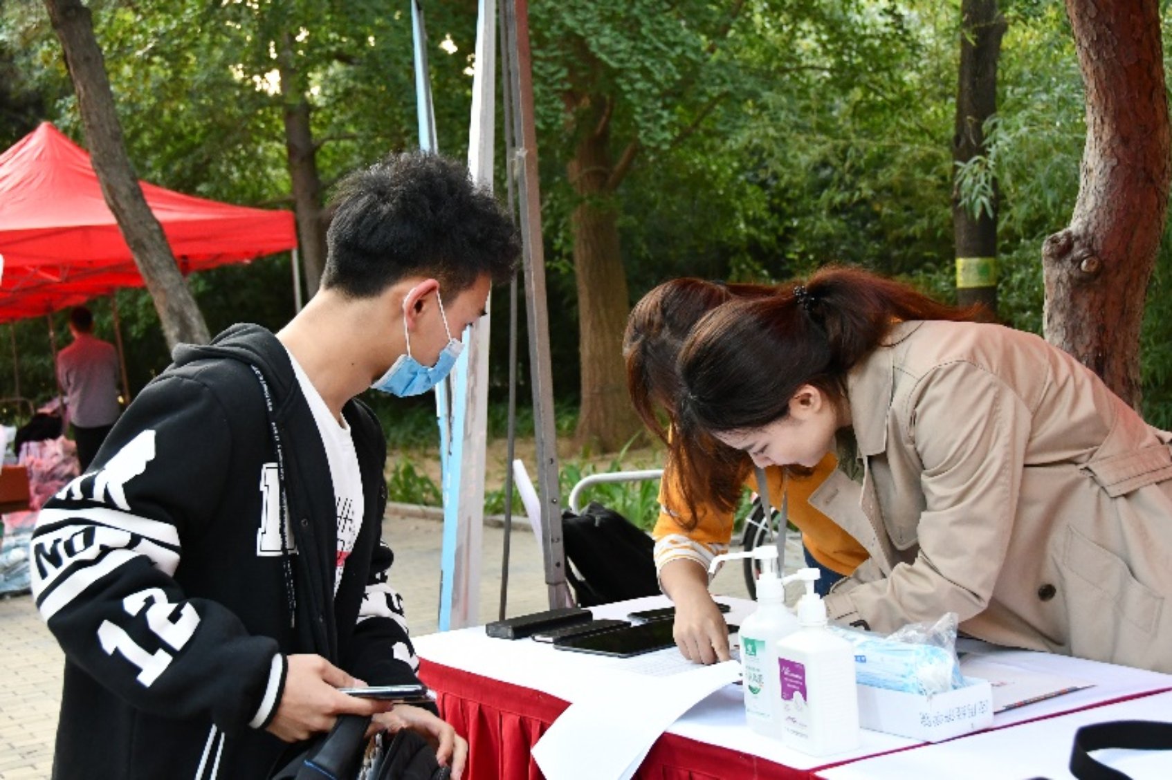 迎着秋日清晨的微凉,踏着熹微的晨光,学院工作人员早早赶到求是园北侧的展位,认真检查着各项准备工作,志愿者们也各司其职,翘首以盼,共同等待新生的到来。