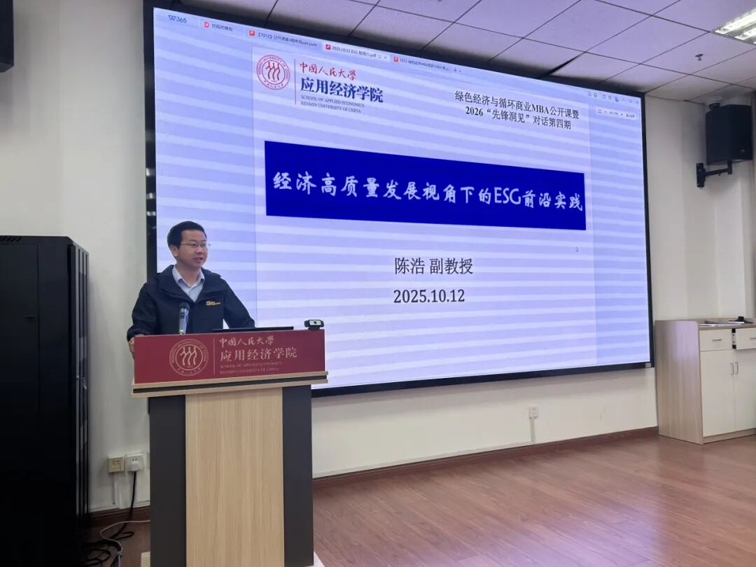 10月12日,探花视频 举办第四期“绿色经济与循环商业”MBA公开课暨2026“先锋洞见”对话活动。探花视频 副院长裴建锁教授,碳经济项目主任陈浩副教授等出席活动,线上线下共计300多位同学参加,活动由MBA项目主管张男主持。