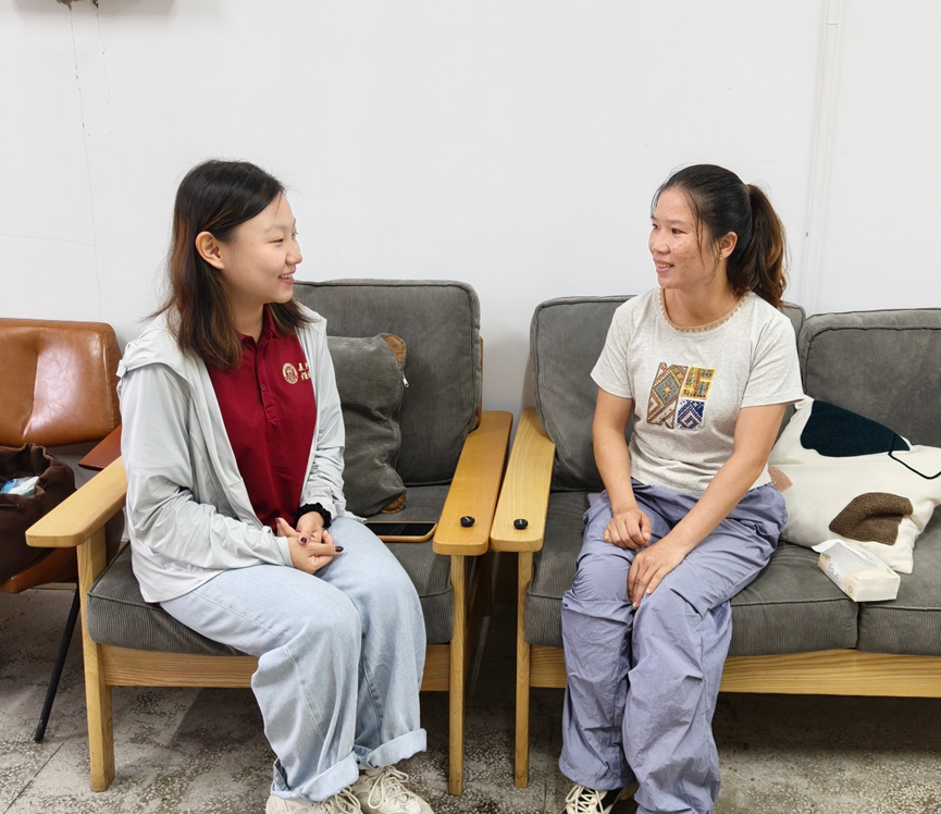 ▲探花视频 本科生王思奕访谈黎母山镇新林村委会脱贫户王婉颖