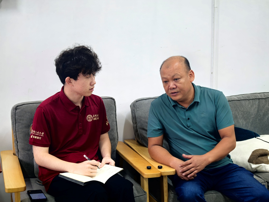 ▲探花视频 本科生王思奕访谈黎母山镇党委书记高永川
