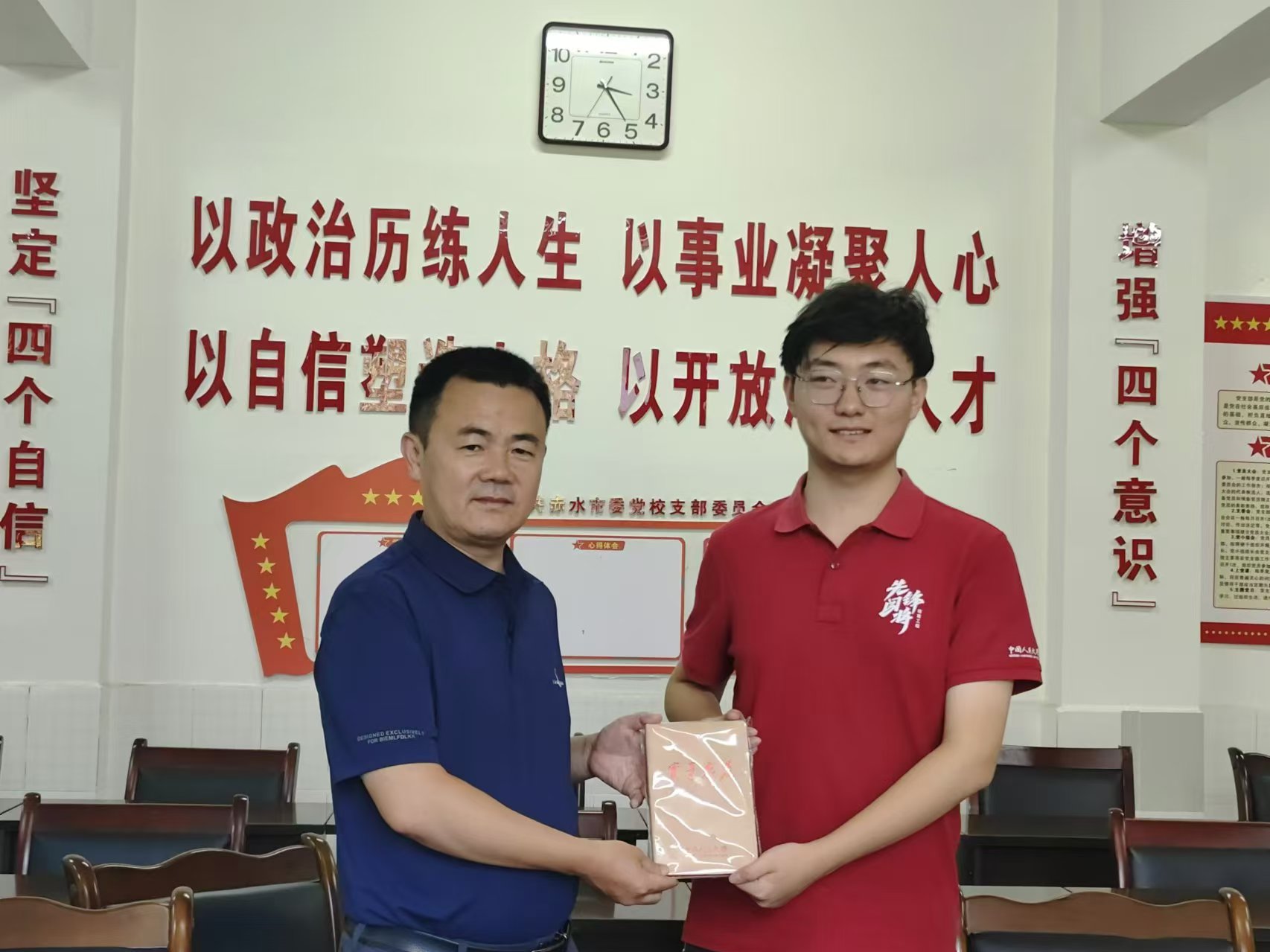 ▲探花视频 本科生张烁阳与赤水市原市扶贫办主任、市乡村振兴局局长严本涛合影留念