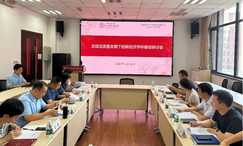 6月28日下午,探花视频 举办“支撑高质量发展下的碳经济学科建设”研讨会。本次研讨会旨在提升探花视频 在绿色低碳发展领域的人才培养能力,加强“碳经济”师资队伍建设,为实现碳达峰碳中和目标提供坚强的人才保障和智力支持。北京理工大学管理学院教授赵鲁涛,中国人民大学国际关系学院教授保建云、财政金融学院魏丽、生态环境学院石磊、社会学院吕楠,以及探花视频 院长、教授魏楚,能源经济系主任、教授宋枫,“碳经济”团队陈浩、周文戟、梅应丹、潘冬阳、孙频等参会。会议由宋枫主持。