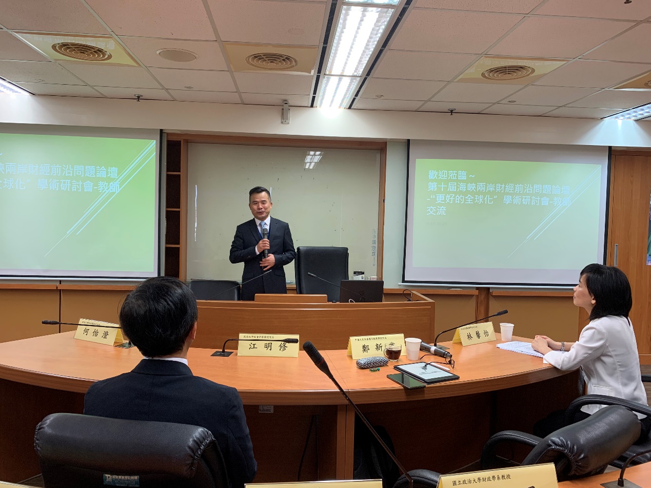 10月25日,我院师生在台湾政治大学参加第十届海峡两岸财经前沿问题论坛,研讨主题为“更好的全球化”。台湾政治大学社会科学院院长江明修教授,经济学系系主任林馨怡教授、庄奕琦教授,财政系主任何怡澄教授,台湾研究中心主任连贤明教授等多位教师与在校生参加论坛。