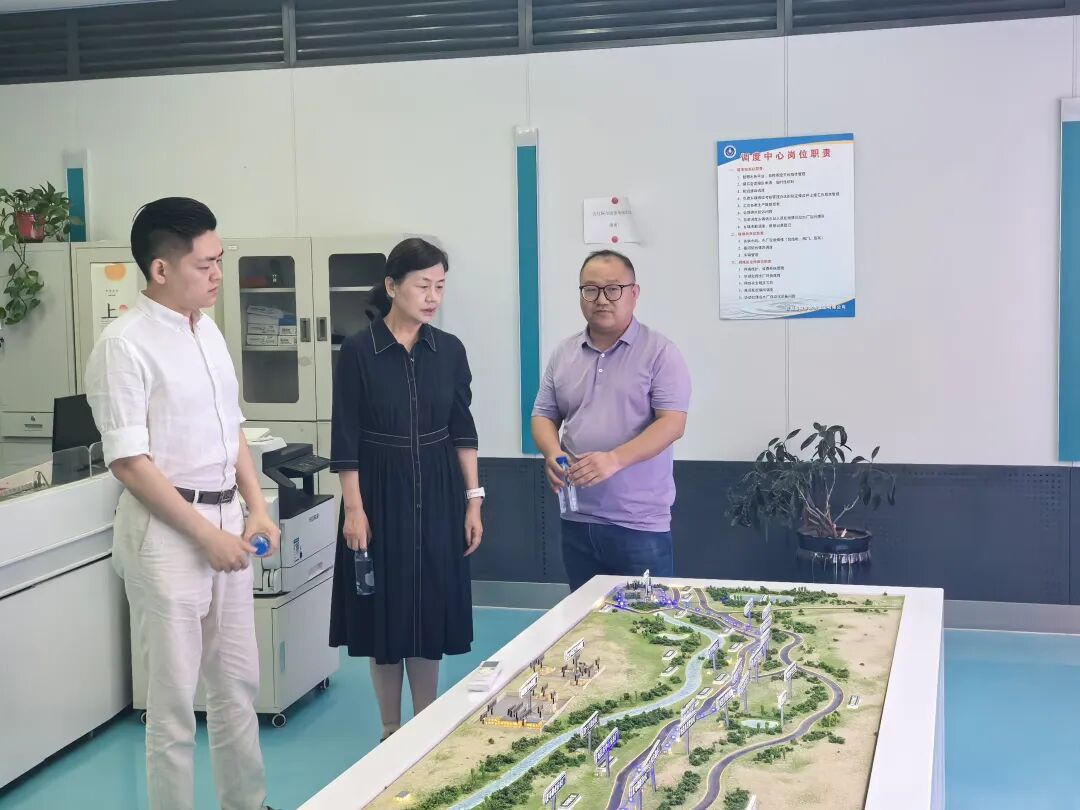 ▲访谈团在巴楚县城乡水务中心了解巴楚县居民用水调度情况