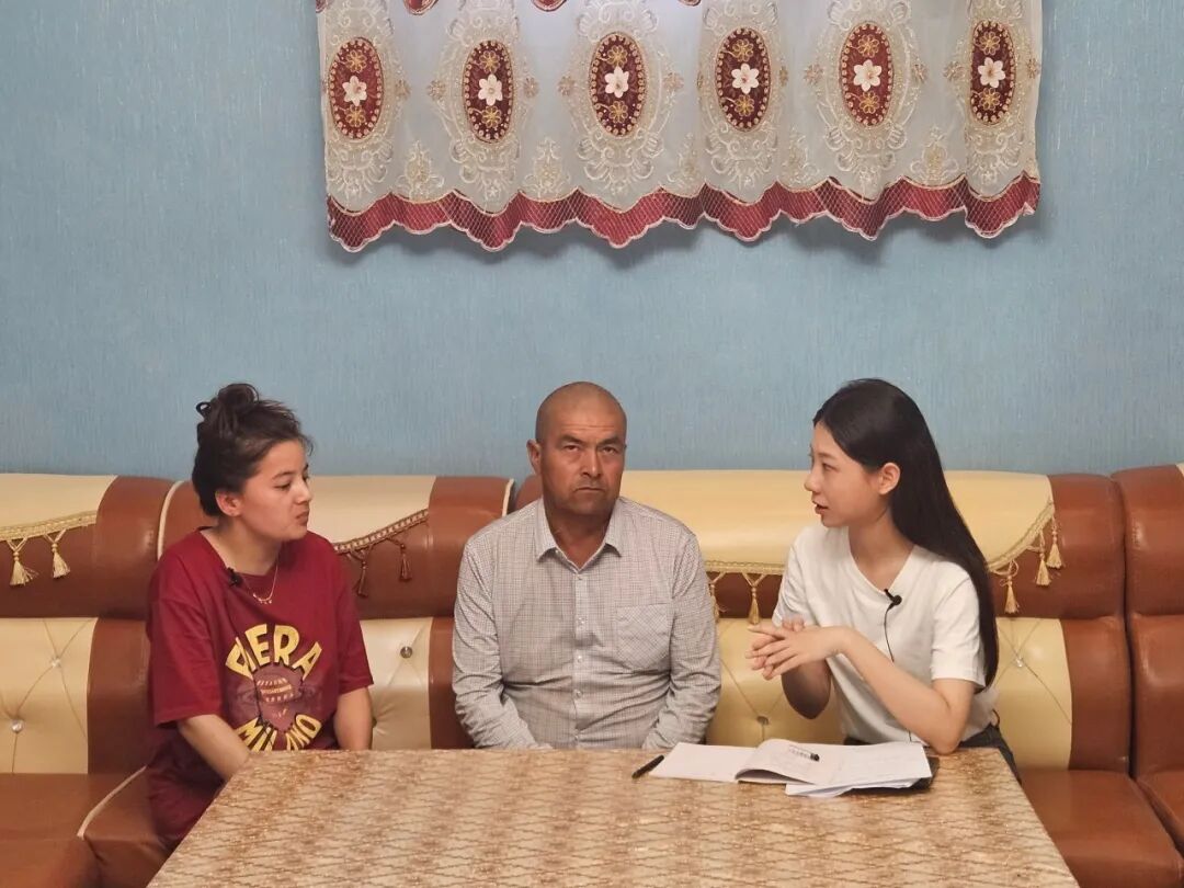 ▲博士生杨宇婧访谈琼库尔恰克5村脱贫户艾山·吐合孙