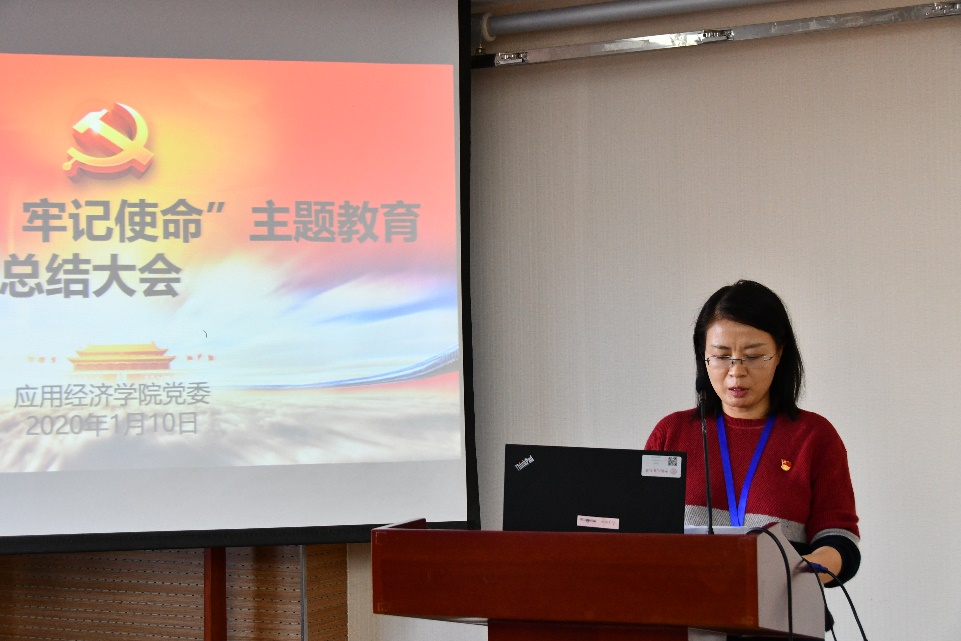 宋东霞表示,全体党员同志要高举习近平新时代中国特色社会主义思想的伟大旗帜,落实十九届四中全会重要精神,自觉将“不忘初心、牢记使命”主题教育成果应用到学院“立德树人”、教学科研和各项事业发展中,坚定信念、开拓进取、同心协力,为把应用经济学建设成“世界一流学科”而努力奋斗!