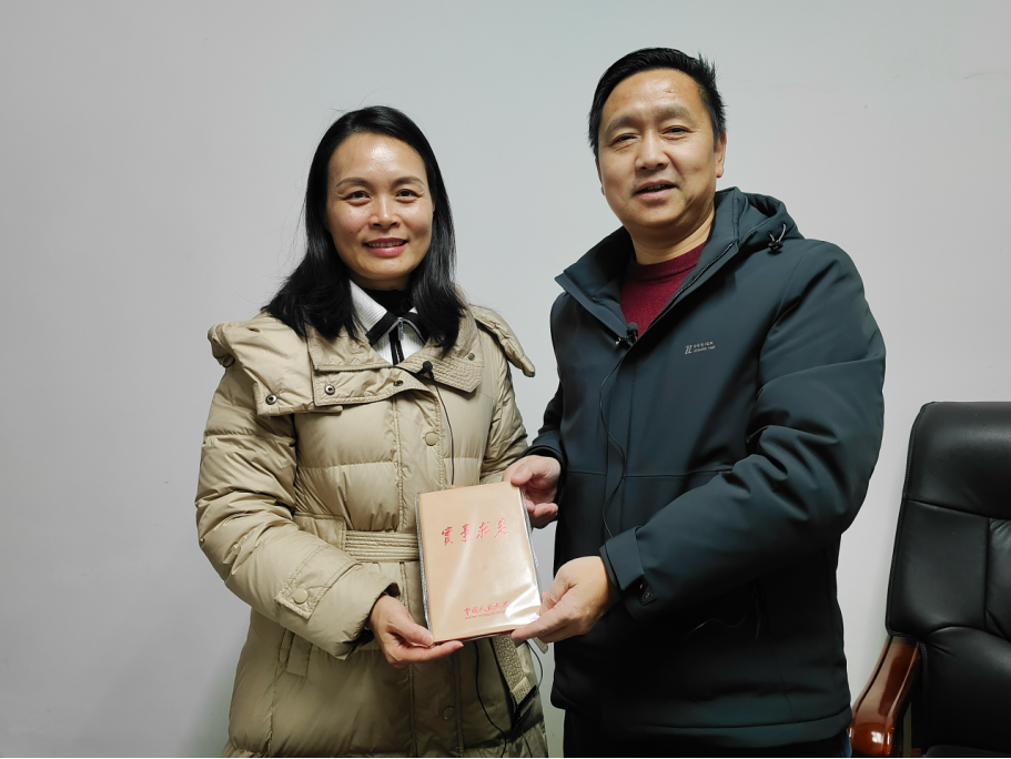 ▲昭通学院马克思主义学院成敏老师访谈威信县农业农村局局长毛子海后赠书留念