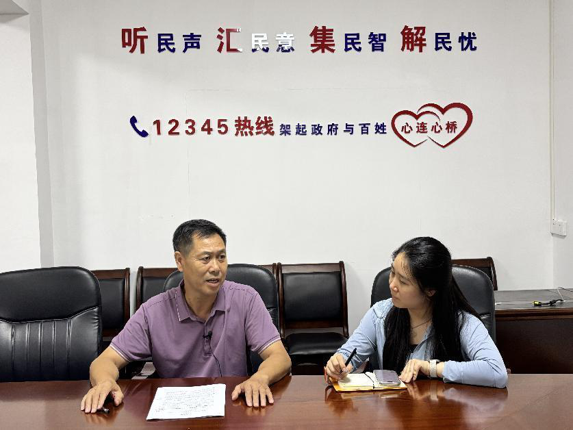 ▲本科生杨乐怡访谈菁芜洲镇车控村党支部书记谢言亮