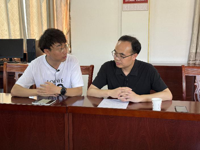 ▲博士生赵晨访谈县委常委、县委政法委书记龙章义