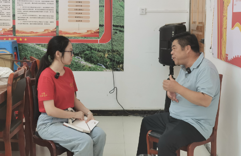 ▲新闻学院本科生陈洁然访谈三都水族自治县前进村党支部书记王恩文