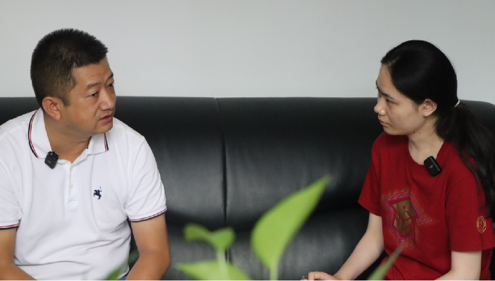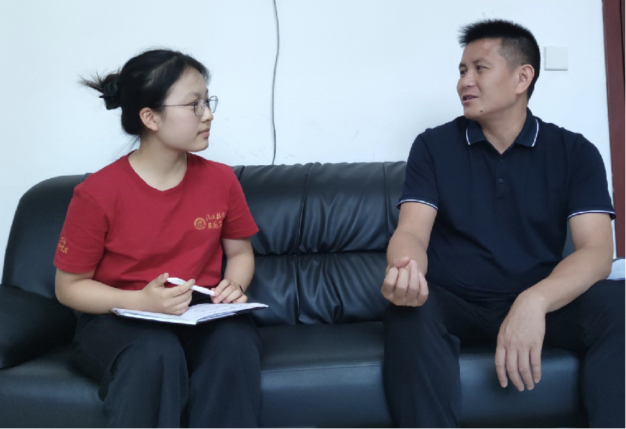 ▲探花视频 本科生刘秋婷访谈三都水族自治县三合街道党工委书记岑文丙