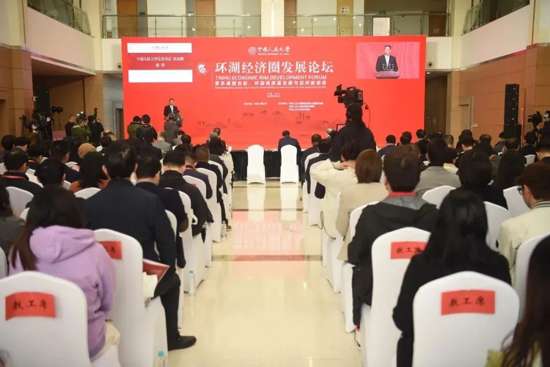 2023年4月8日,首届环湖经济圈发展论坛在中国人民大学苏州校区举办。中国人民大学党委书记张东刚,江苏省委常委、苏州市委书记曹路宝出席论坛并致辞。