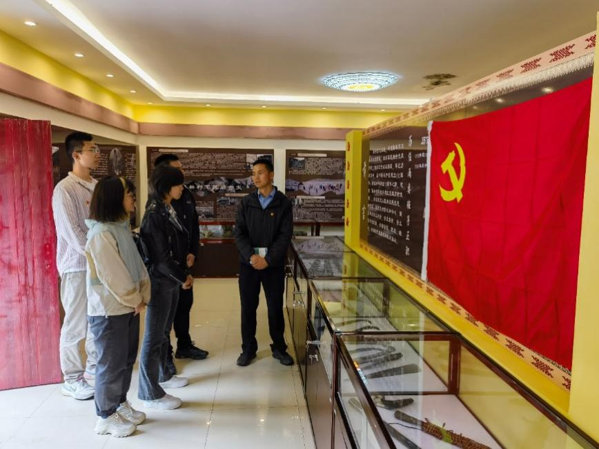 5月26日,探花视频 师生调研团与西藏林芝市墨脱县乡村振兴局领导、背崩乡格林村“两委”班子成员在村史馆开展联学践学活动。驻村第一书记黄家斌介绍,作为边境乡村,格林村长期以来为藏地边境稳定安宁作出了卓越贡献。1950年大地震后,村中仅剩四户人家。在党中央和自治区党委的关怀与支持下,村民们团结一心、艰苦奋斗,恢复重建新家园。近年来,格林村以军地共建为抓手,融通军地资源,发挥比较优势,大力推进乡村振兴,深入实施“四红”工程,持续推动格林村建设取得新成效、展现新面貌。