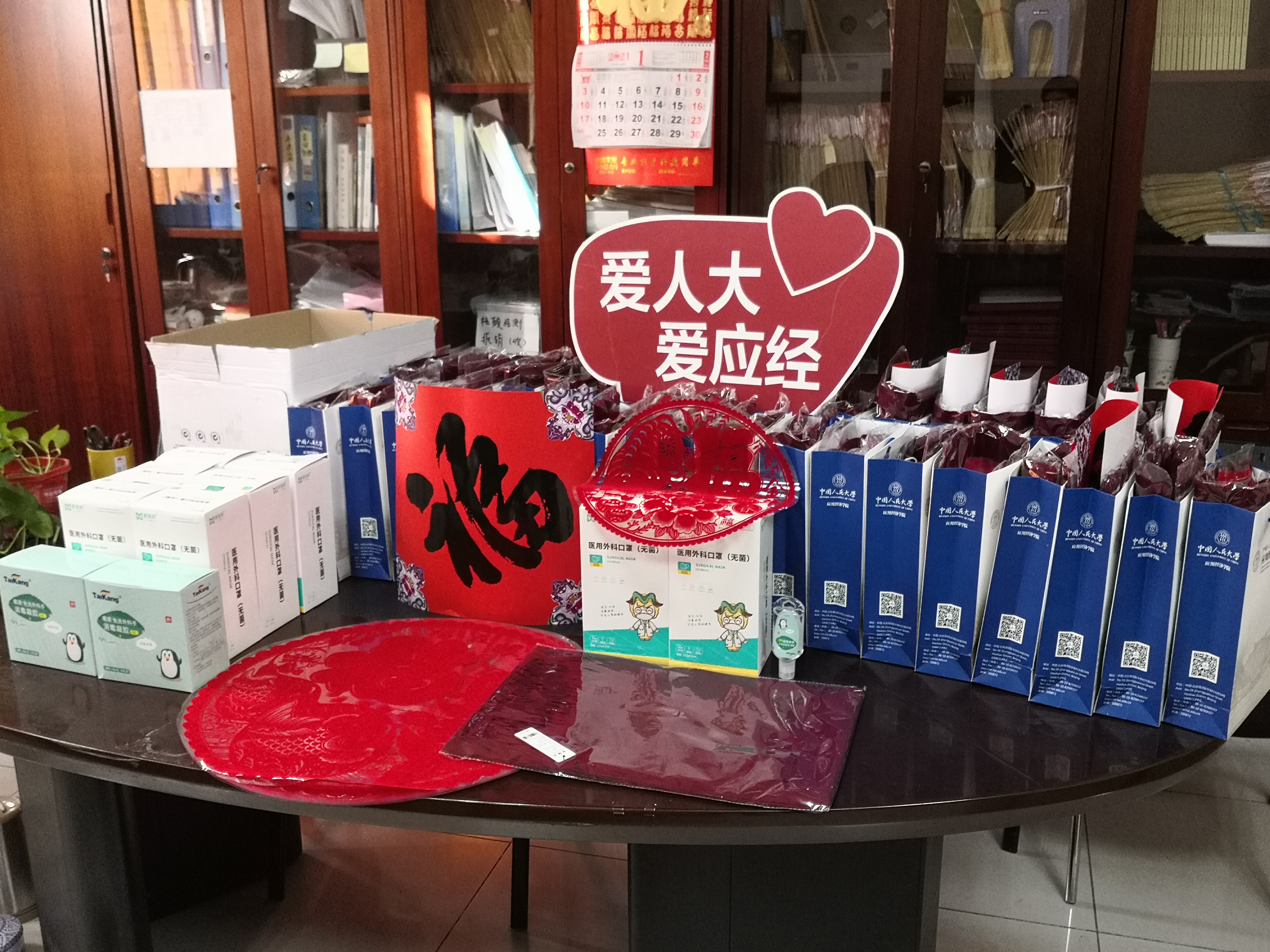 为让留校学生过个丰盛、喜庆的春节,学院精心准备了新年礼包,除了围巾、福字、窗花等迎春物品,更贴心准备了口罩、消毒液等防疫物资,让同学们的留校生活暖心更安心!