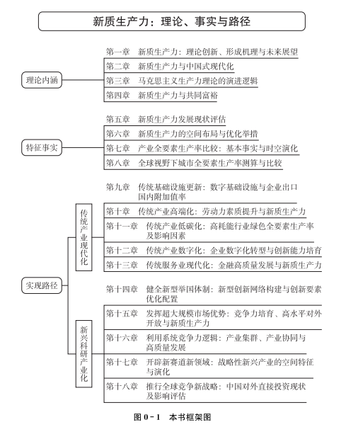 本书的第一篇研究新质生产力的理论内涵。新质生产力理论是对马克思主义生产力理论的中国化、时代化创新,改造并发展了生产函数理论和经济增长理论,是习近平经济思想的最新创新成果和理论飞跃。新质生产力理论坚持解放和发展社会生产力这一马克思主义政治经济学的基本命题,同时紧扣我国新时代新征程社会主要矛盾的实质,标志着中国共产党对社会生产力发展规律的认识达到新高度。