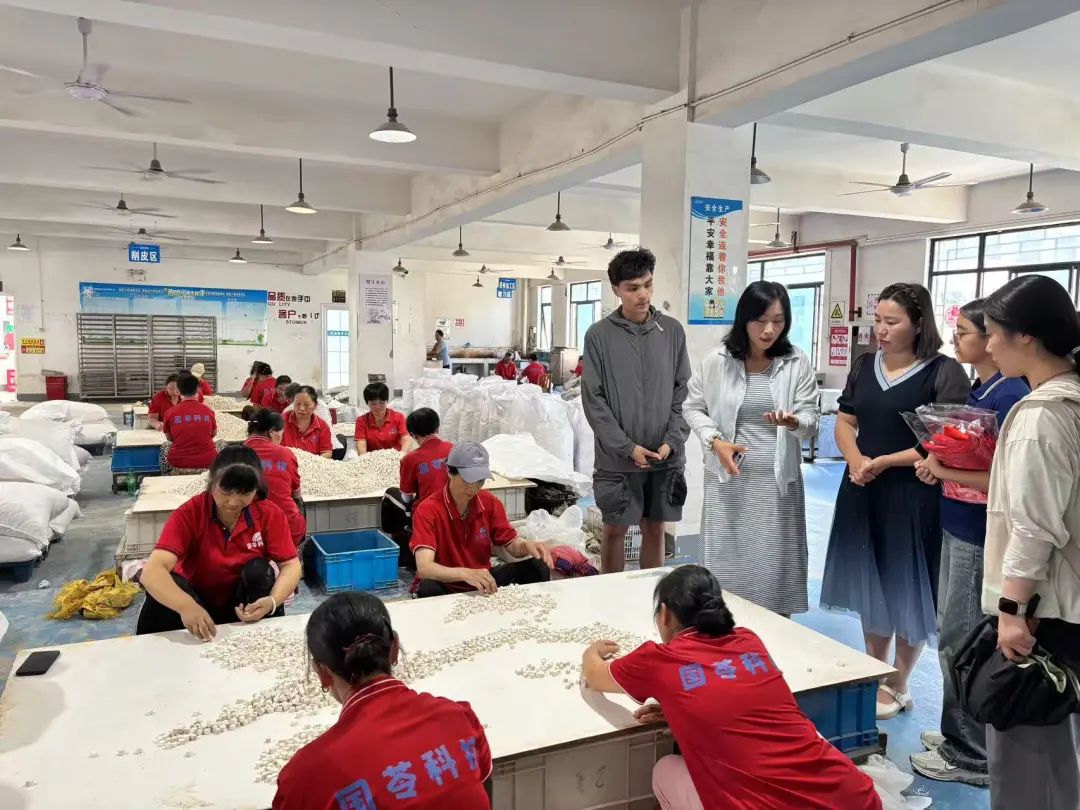 ▲访谈团在靖州国苓科技有限公司调研茯苓产业