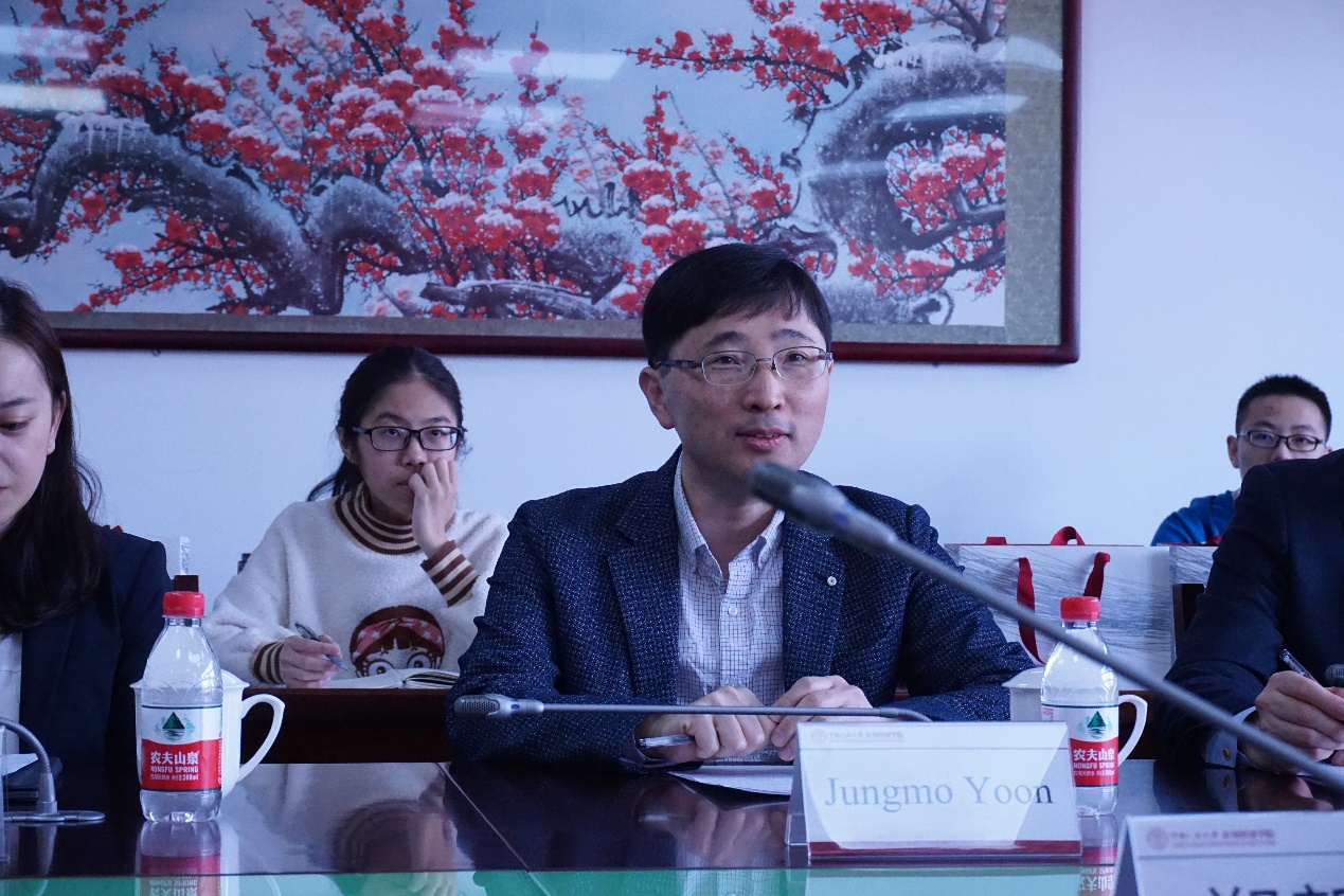 汉阳大学经济与金融学院系主任Jungmo Yoon副教授对郑新业院长的热情欢迎表示感谢,他表示汉阳大学与我校联合学术研讨会的已持续了十二年,已由初生的婴儿成长为少年,双方保持了长期的友好合作。随后,Yoon主任对汉阳大学国际小学期的相关情况做了介绍,对双方的学生交换等合作表达了浓厚的兴趣。