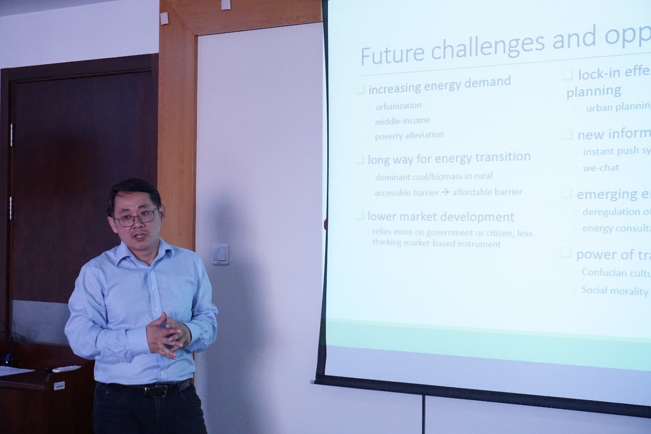 谢伦裕副教授对魏教授的报告进行了总结讨论,进一步补充了研究家庭能源消费行为的相关文献,并介绍了能源经济系家庭能源消费调查数据和系列报告。与会嘉宾也纷纷提出看法,现场学术气氛热烈。