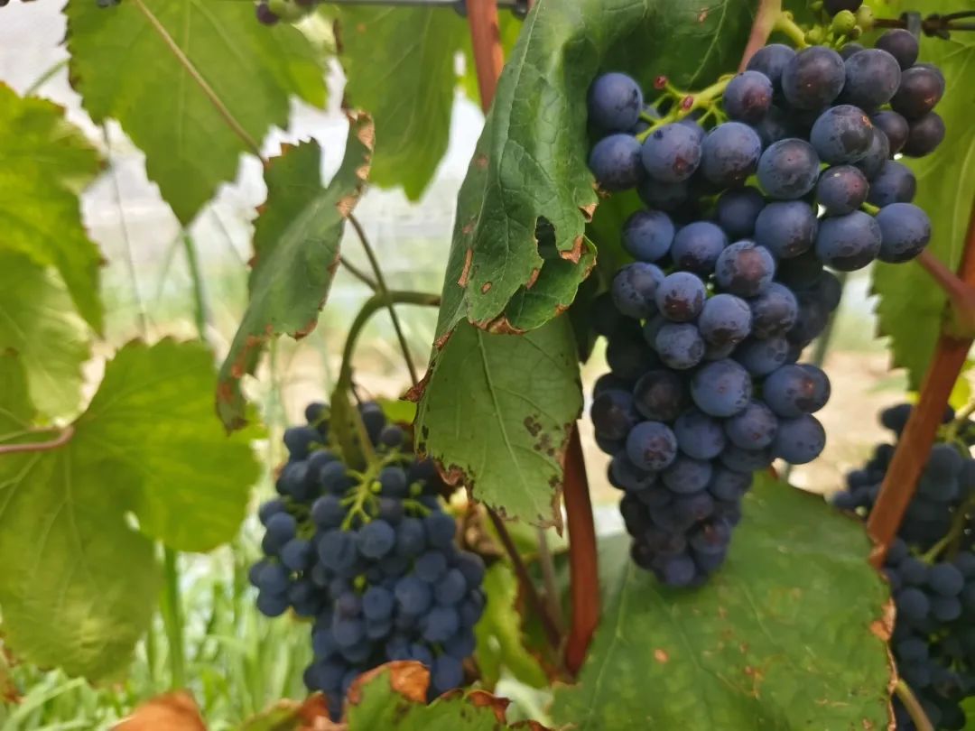 ▲万亩葡萄基地内即将成熟的葡萄