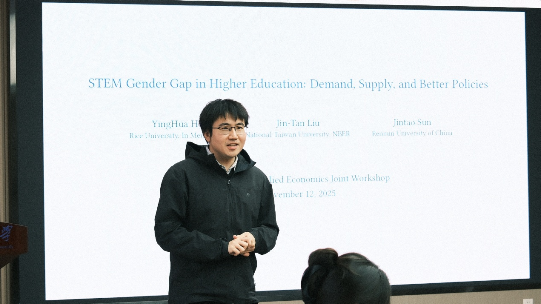 孙津韬报告了论文“STEM Gender Gap in Higher Education: Demand, Supply, and Better Policies”。研究利用中国台湾地区2003年全面的大学招生数据,探讨了STEM领域的性别差距问题。研究发现,尽管女性已占大学毕业生多数,但在理工科专业中占比仅为30%。研究的主要结论是,超过一半的性别差距源于学生早期的决策——女性学生绝大多数选择了非理工科,即没有参加理工科专业所需的科目考试。反事实政策模拟显示,由于决策问题,免除学费或增加女性教师比例等政策对缩小整体差距几乎无效。韩璇师行了点评,她建议增加后续队列或进行前后对比,以检验性别差距机制的稳定性。