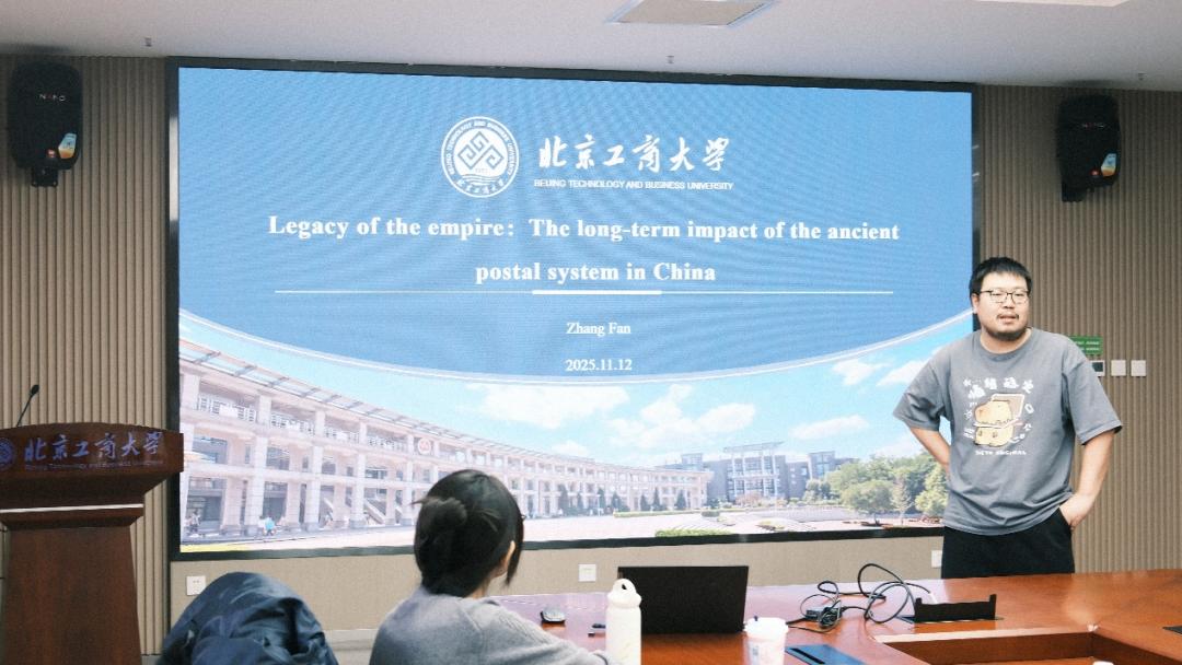 张凡报告了论文“Legacy of the Empire:The Long-term Impact of the Ancient Postal System in China”。论文基于手工整理明代驿站驿道分布数据,绘制相关地图并匹配多元历史、地理数据,构建微观栅格尺度独特数据集,通过识别该系统的本地效应与溢出效应评估长期影响。研究发现,古代交通设施的长期影响依然成立,由本地效应和溢出效应共同构成,周边区域亦能受益,其影响源于对现代交通设施形成及古代城市发展的路径依赖,且时间趋势稳定。栗雅欣进行了点评,她建议增加河流对比,以增强结论的说服力。
