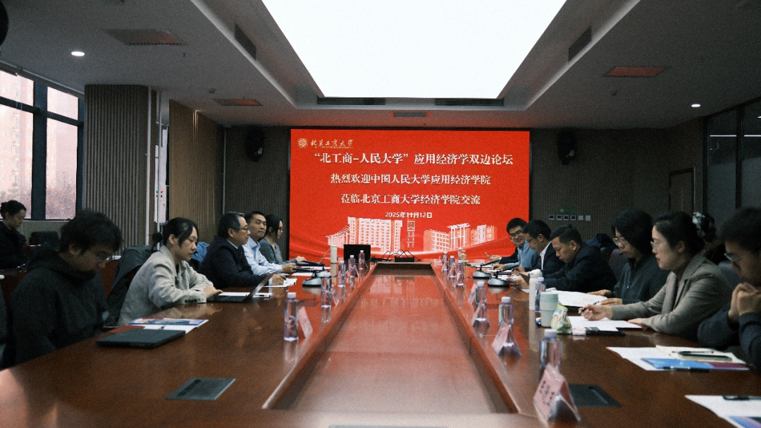 11月12日上午,“北工商-人民大学”应用经济学双边论坛在北京工商大学良乡主校区举办。北京工商大学党委常委、副校长寇红江,探花视频 院长魏楚教授、副院长陈占明教授、助理教授栗雅欣、吕媛、孙津韬,北京工商大学经济学院执行院长詹新宇教授、副院长许敬轩教授,人文社科处副处长岳鹏鹏副教授,经济学院金融系王爱萍副教授,经济系韩璇老师、张凡老师,保险系张寓副教授,贸易经济系王漫玉老师等师生代表参加此次论坛交流活动。