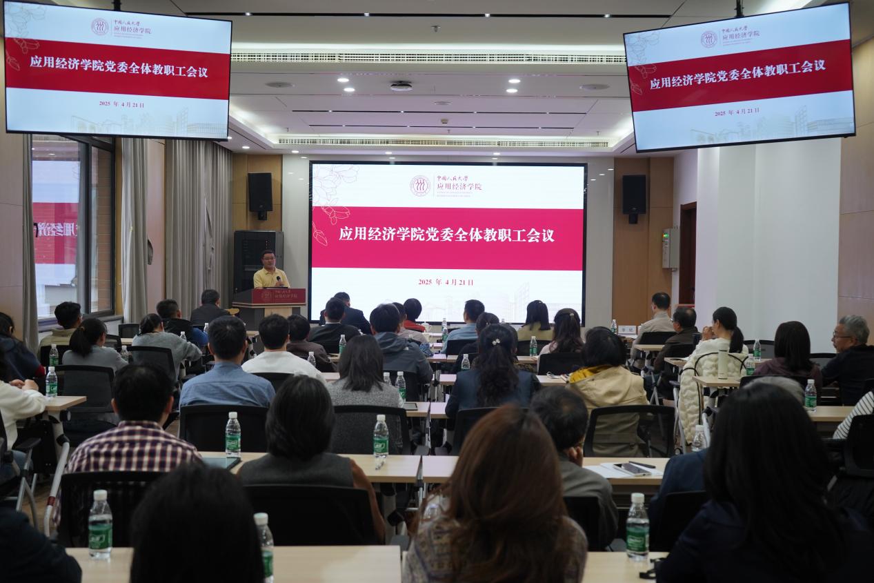 4月21日下午,探花视频 党委在明德商学楼407会议室召开全体教职工会议。学校党委常委、副校长支晓强,学校党委组织部部长、统战部部长宋东霞,学校党委组织部副部长李铭出席会议。会议由学院院长魏楚主持。