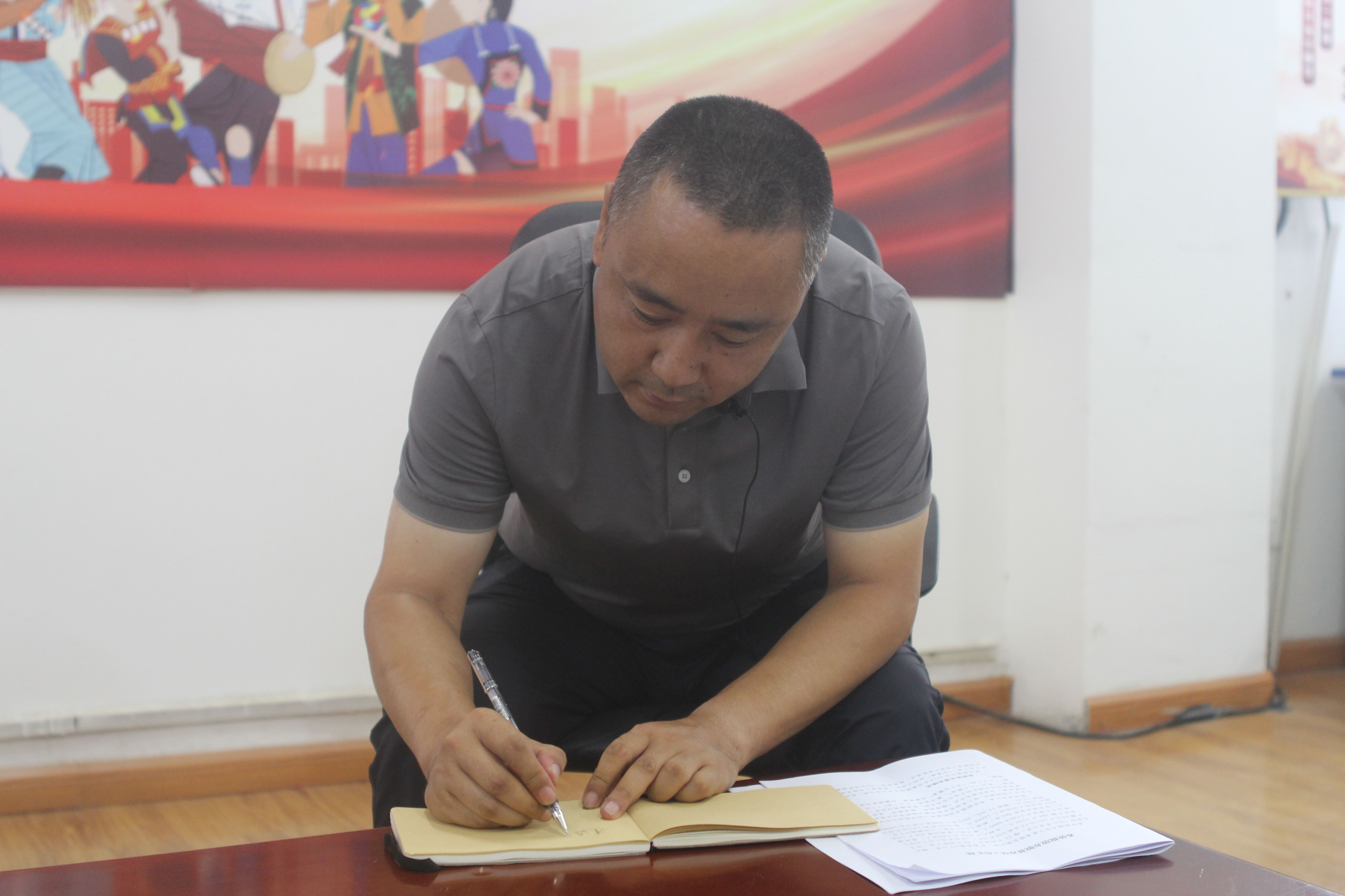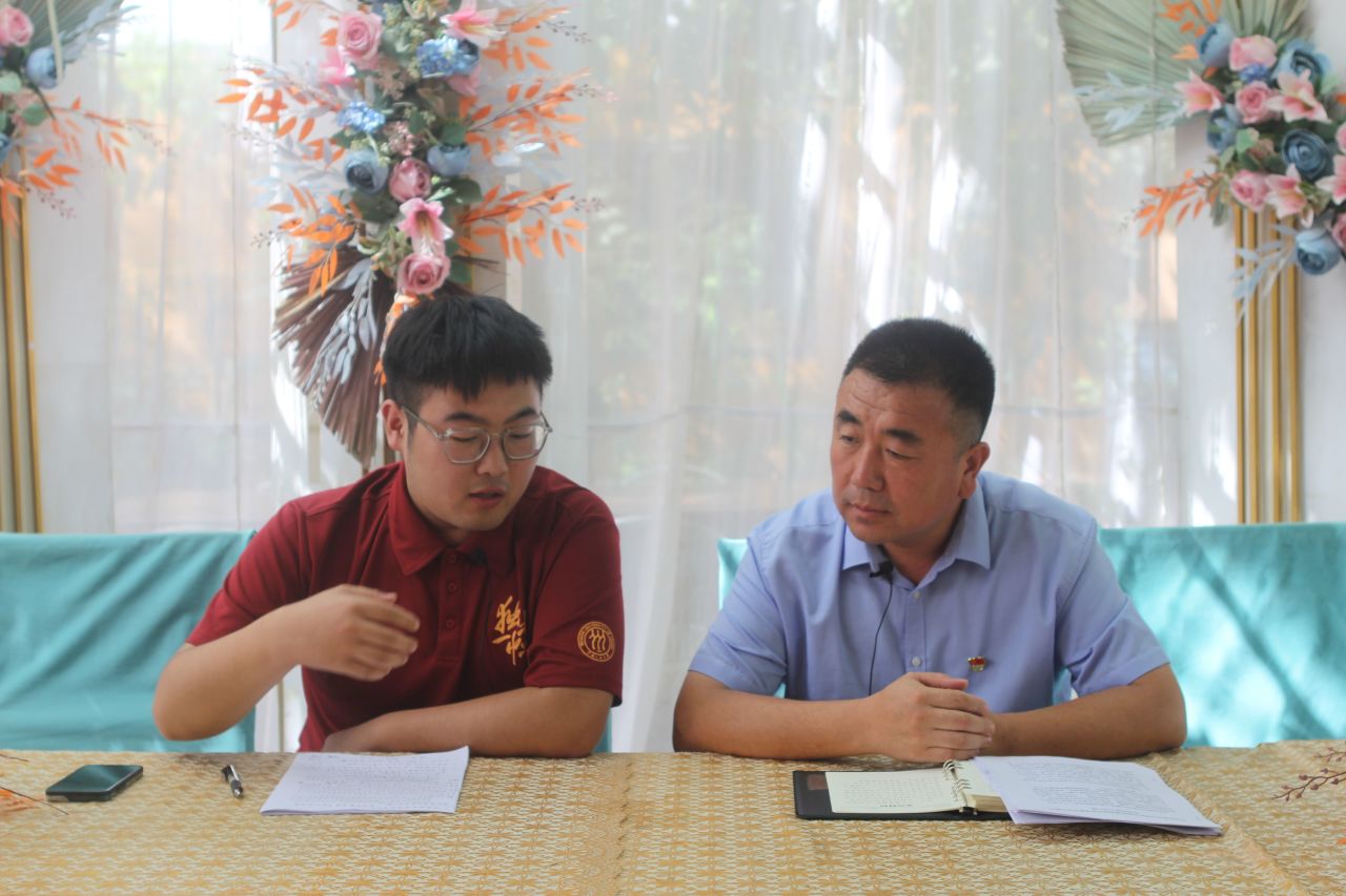 ▲ 访谈团硕士生万沪宁访谈希依提墩乡党委书记孙林杰