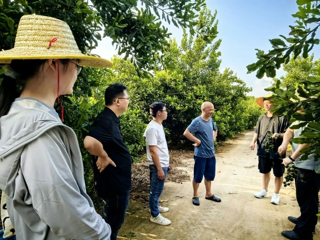 ▲调研团在种植基地了解坚果产业发展情况