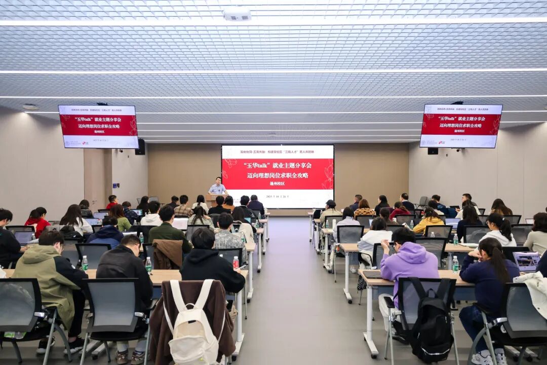 10月26日下午,就业主题分享会“玉华talk:迈向理想岗位求职全攻略”举办,作为“双向协同·五育共融:构建双校区‘三有人才’育人共同体”思政工作精品建设项目的系列活动,此次分享会在通州校区学生事务中心举办,来自中关村校区、通州校区的同学们共同参与。