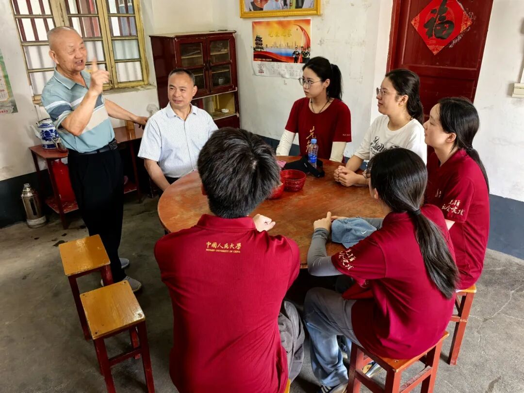 ▲赣劲十足队的老师和同学们在认真倾听红峰村村书记讲述脱贫攻坚故事