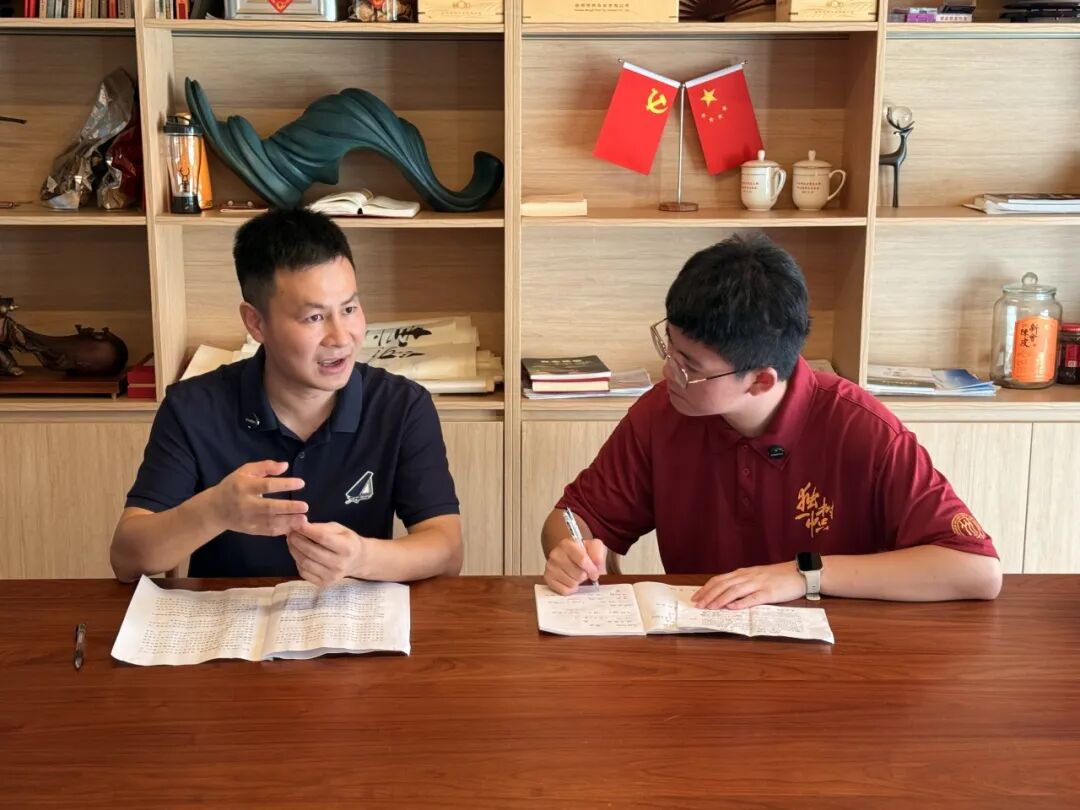 ▲探花视频 本科生蒋予凡访谈红峰村村党支部第一书记郭健锋