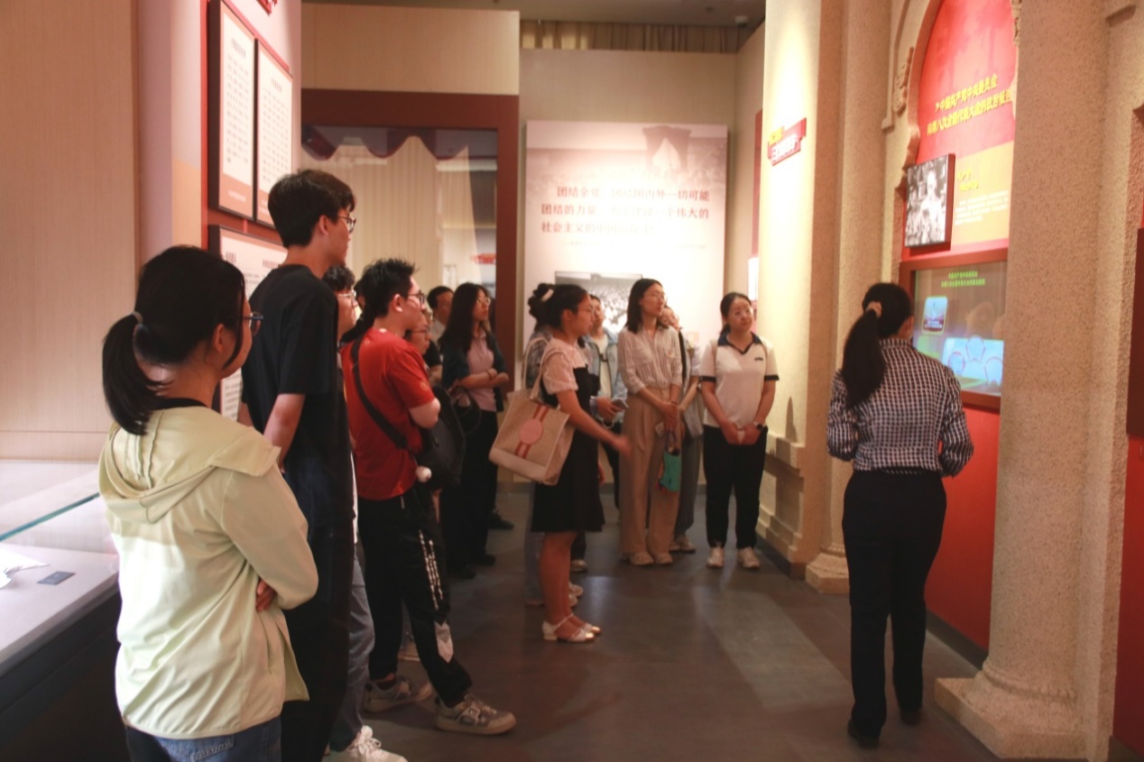 在讲解员的带领下,支部成员参观了中国共产党第八次全国代表大会历史陈列展。展览详细还原了中共八大召开时的历史场景,全景式反映了中国共产党为开辟一条适合中国国情的社会主义建设道路而进行的积极探索。在“大会准备”部分,同学们认真学习中共八大召开时的国内外背景、《论十大关系》等大会筹备的重要内容;在“大会召开”部分,大家近距离参观了毛泽东同志起草的开幕词大纲、主席团名单、中共八大召开时现场录像等珍贵文件和历史影像;在“大会意义和影响”部分,通过图片图表、视频档案、沙盘实物等方式的学习,大家对“中共八大对社会主义改造基本完成以后国内的主要矛盾作出了科学的判断”的重要意义有了更加深刻的理解。