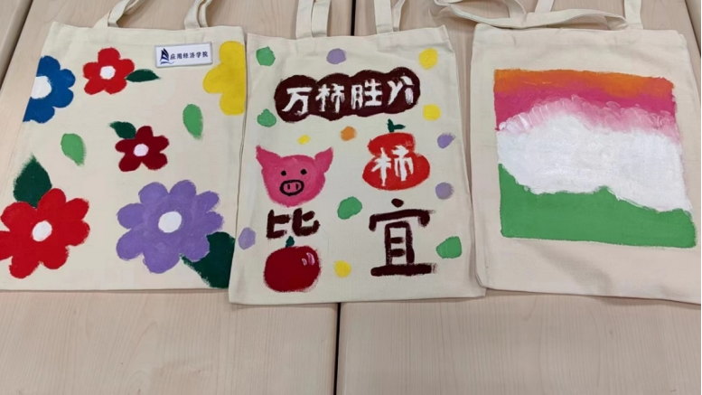 在夏日分别的季节,即将毕业的应经学子们再次执笔,以青春为底色,以帆布袋为载体,画明德楼的如火夕阳,画图书馆的点点灯光,画一勺池的春柳夏花,画百家廊的秋叶冬雪,画这承载自己回忆的地方,留住风华正茂的青葱岁月。在帆布袋diy活动中,应经学子拿起手中的画笔,向这段时光按下快门,凝聚青春的独家记忆。