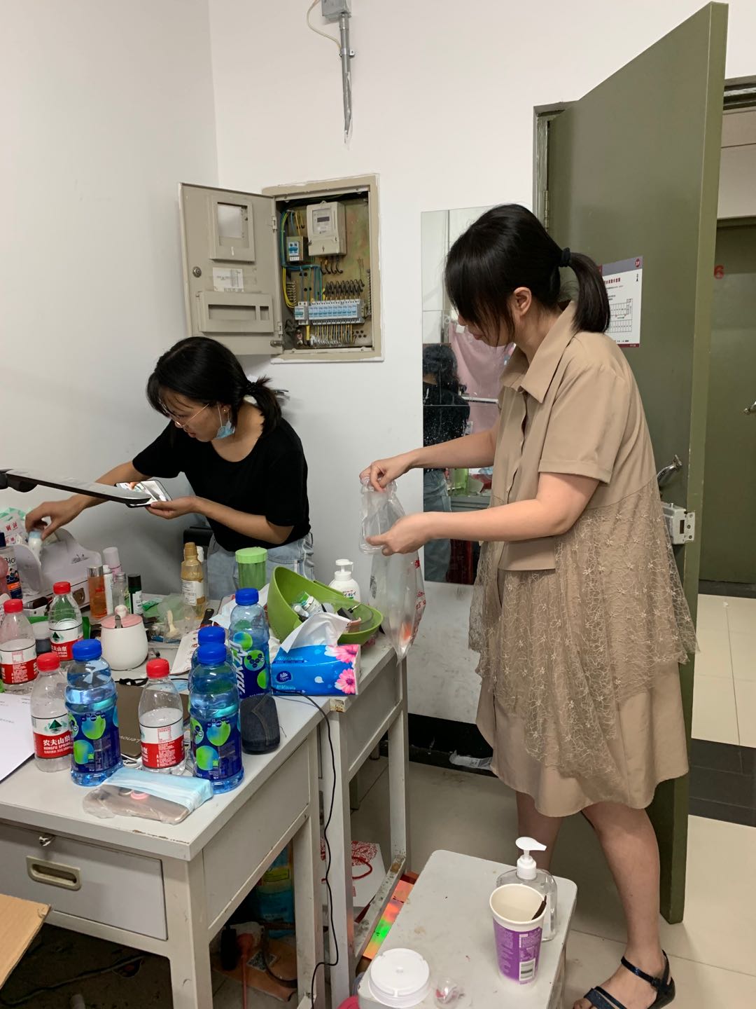 硕士生志愿者陈小倩、本科生志愿者陈奕灼在封箱
