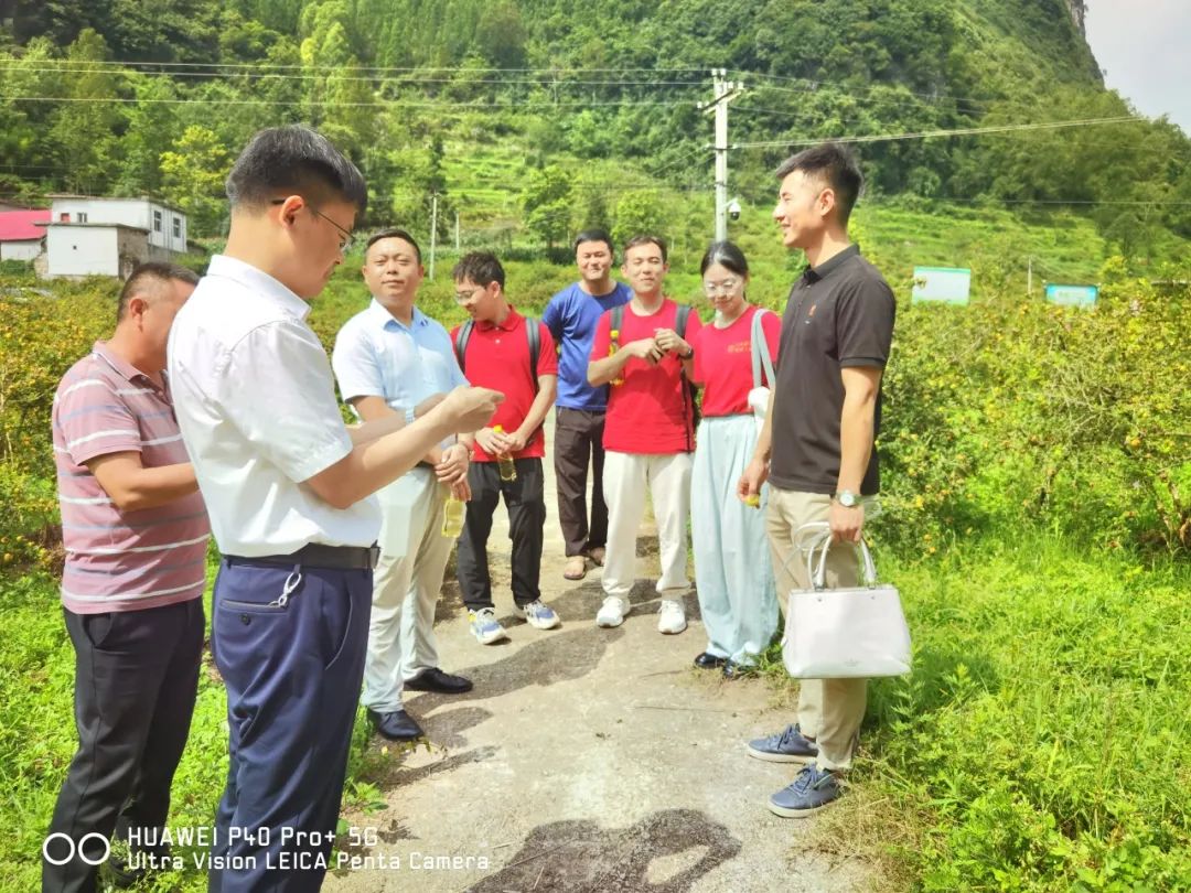 ▲访谈团在野钟乡野钟村贯子冲组刺梨产业园调研