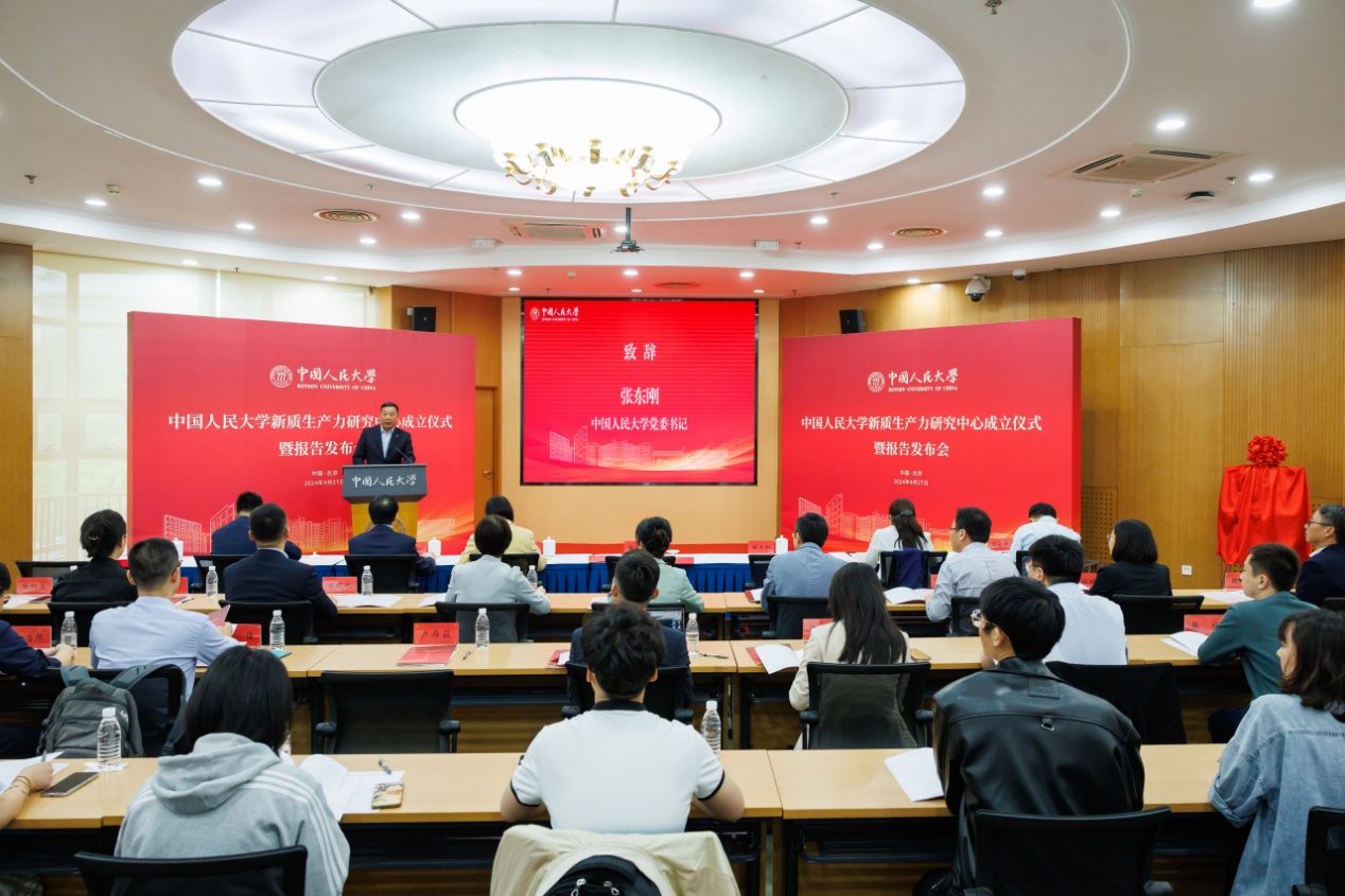 张东刚指出,中国人民大学新质生产力研究中心的成立,既是深入学习贯彻习近平总书记关于发展新质生产力的重要论述的战略举措,也是持续深入贯彻习近平总书记在学校考察调研时重要讲话精神,准确把握“强国建设、高等教育何为、人大何为”这一关键问题的具体实践。希望研究中心充分发挥学校在我国人文社会科学领域“独树一帜”的办学优势,夯实发展新质生产力的理论基础,为发展新质生产力提供强大学理支撑;聚焦科技创新,以国家重大战略需求为导向,整合优势资源,为我国实现高水平科技自立自强贡献更多智慧力量;强固人才支撑,着力完善全链条人才引育机制,培养更多与中国式现代化建设相适应的拔尖创新人才,为发展新质生产力筑牢人才基础。