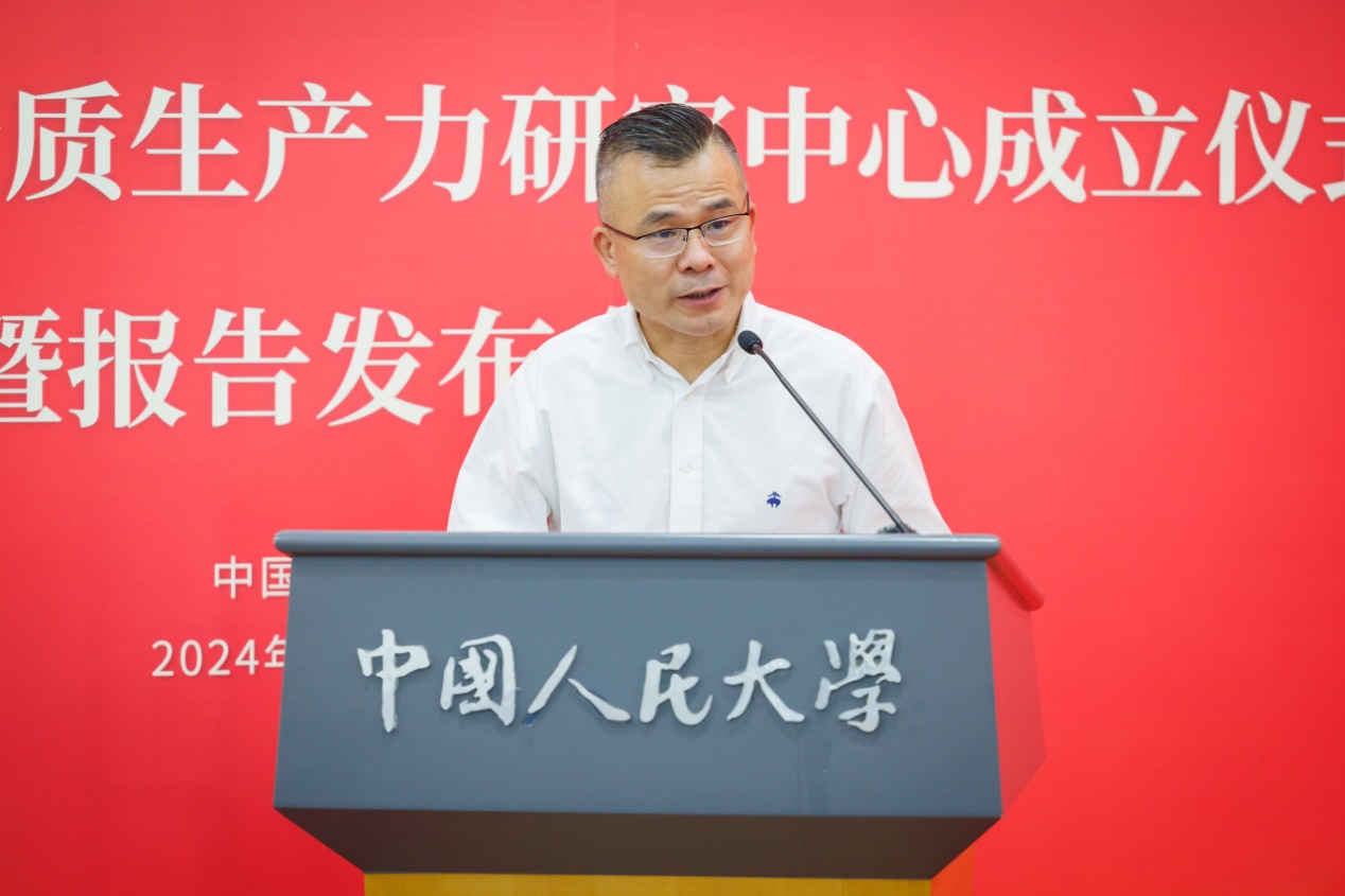 李善同指出,随着全球发展环境的复杂性、严峻性和不确定性上升,新质生产力概念的提出,指明了我国新发展阶段激发新动能的决定力量,明确了我国重塑全球竞争新优势的关键着力点,为新时代新征程加快科技创新、推动高质量发展提供了科学指引。当前,新质生产力研究仍处于起步阶段,许多未知领域尚待探索,作为我国人文社会科学高等教育领域的一面旗帜,中国人民大学成立新质生产力研究中心,正当其时,意义重大。希望学校充分发挥学科优势、人才优势和理论研究优势,深刻认识和把握新质生产力的内涵、特征和发展规律,紧跟科技和产业发展新趋势,以新质生产力研究中心建设为牵引,积极探寻中国经济社会发展规律,为新质生产力理论研究提供广阔的学术视野和全面的分析框架,不断推出高水平研究成果,推动新质生产力加快发展。