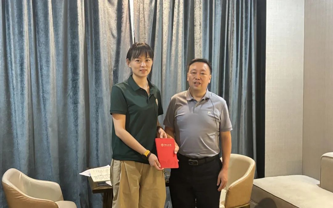 ▲经济与贸易学院吴施美副教授对辰溪县县委常委、县委办主任张义东访谈后赠书留念