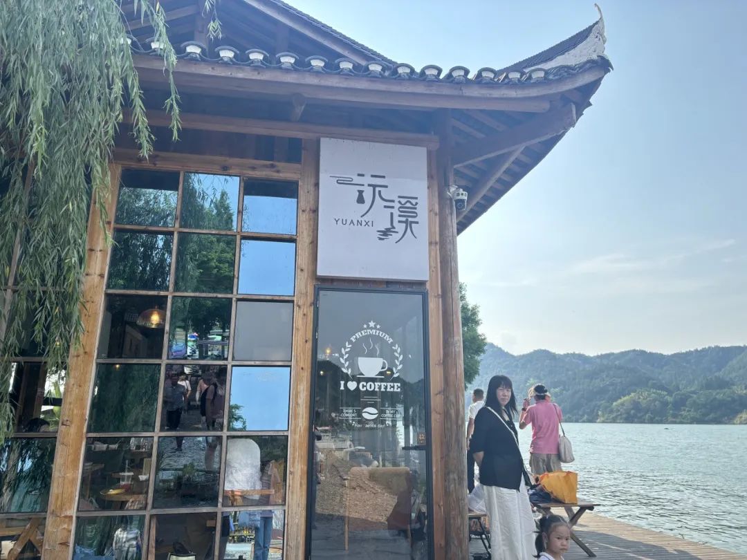 ▲辰溪县柿溪乡溪口村内咖啡馆,村民正惬意地享受午后时光