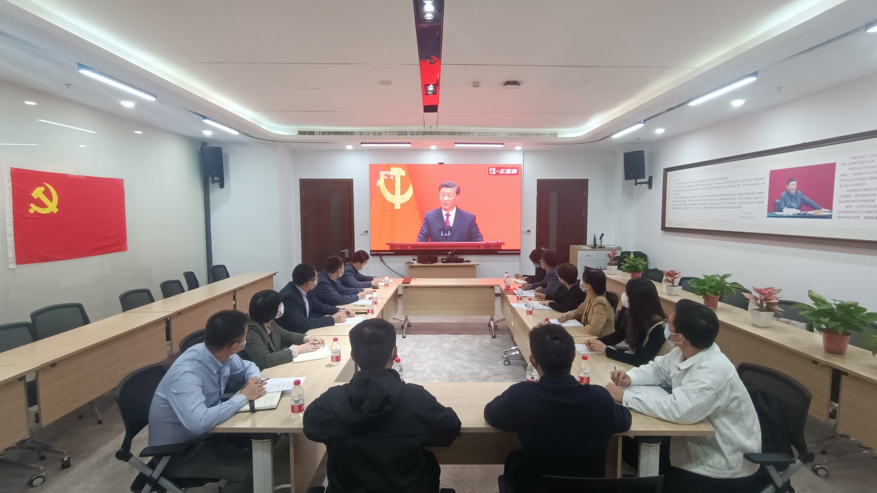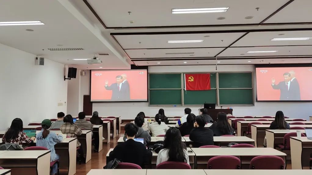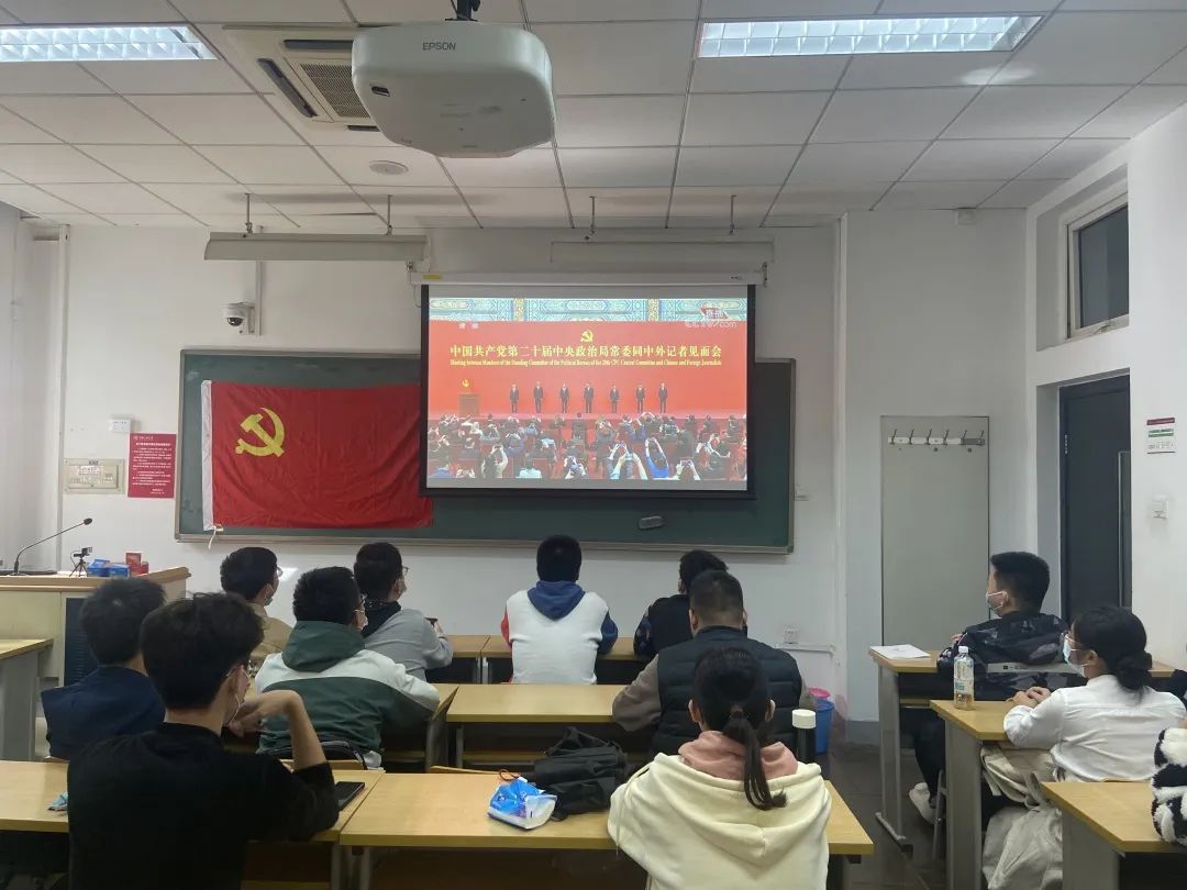 探花视频 党委组织学院师生以多种形式收听收看中国共产党第二十届中央政治局常委同中外记者见面会直播。学院党委理论学习中心组成员、管理团队成员、教师党支部书记、系所负责人、教师及本硕博学生代表等在明德主楼405会议室集中观看见面会直播并召开专题学习会。