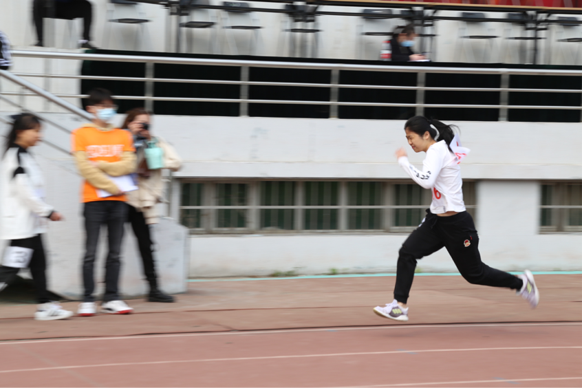 袁玥初同学在女子50米比赛中挥洒汗水,取得了第八名。女子三级跳比赛中,戴琦同学赢得了第十名。