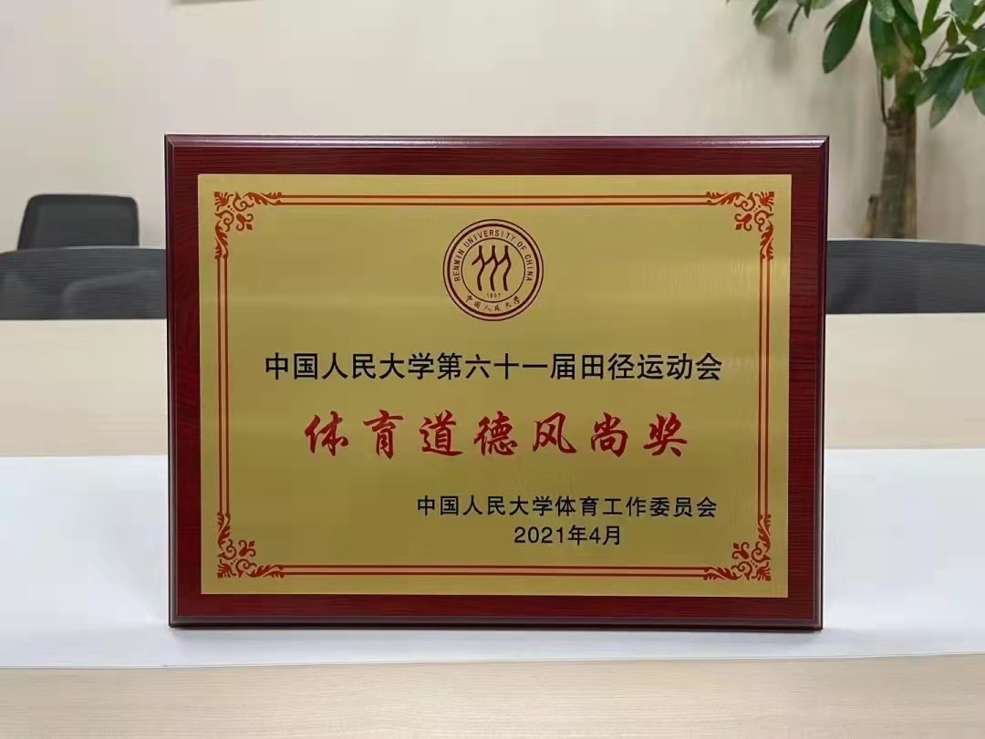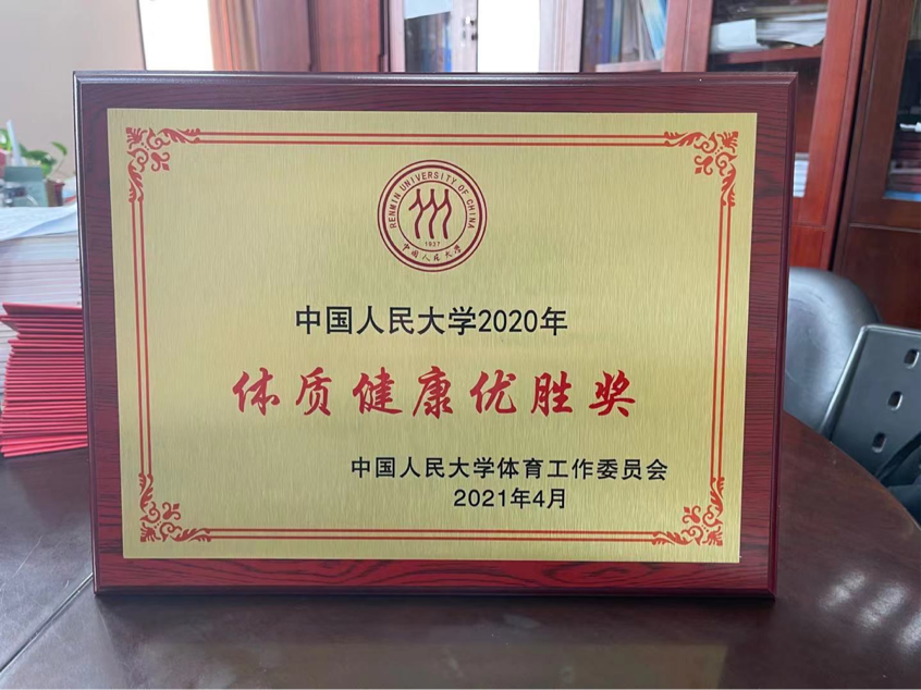 本次开幕式上,我院因2020年秋季学期体测成绩优良率名列前茅,获得了中国人民大学2020年体质健康优胜奖!