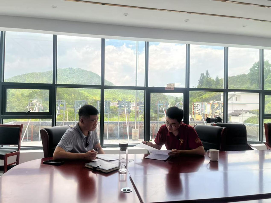 ▲新闻学院曾持老师访谈珠坑乡党委书记毕程俊