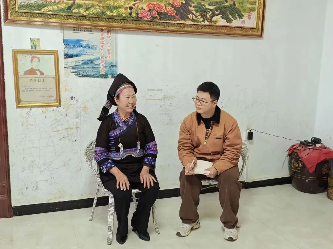 ▲硕士生刘诗奥访谈茶花村脱贫户毕绍芬