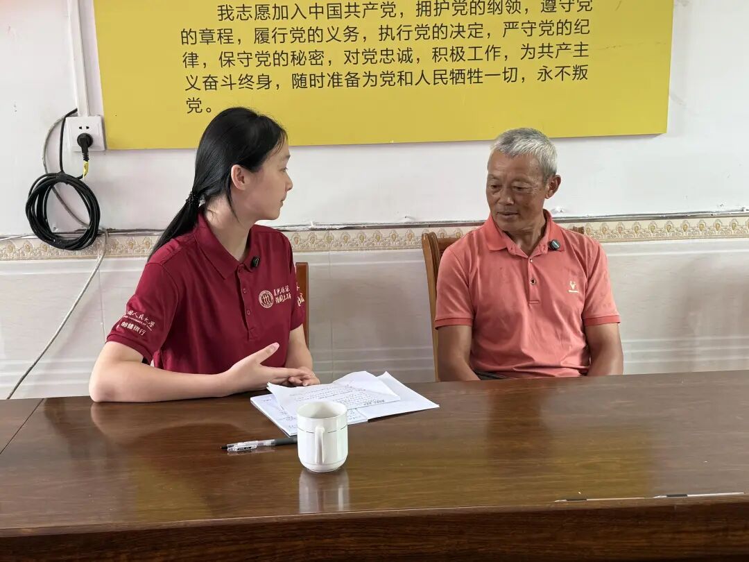 ▲探花视频 本科生彭佳颖与万安县涧田乡良富村脱贫户郭守先访谈