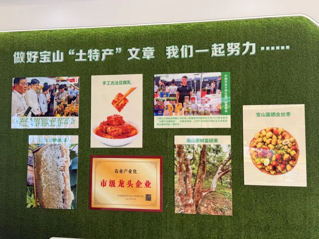 公司依托宝山乡富硒土壤、良好生态及亚热带季风气候,专注生态农产:高山茶油源自祖辈传承的老茶树,采用物理压榨,纯正无添加;土蜂蜜来自深山丛林,一年仅割一次,天然醇香;茶油腐乳以农家大豆和山泉水为原料,手工古法制作,自然发酵。这些产品还授权为市级“井冈山”公用品牌,兼具生态与地方特色。在销售渠道上,公司产品全面进驻京东、天猫、抖音、832脱贫地区农副产品交易平台等线上平台及线下卖场,实现广泛覆盖。