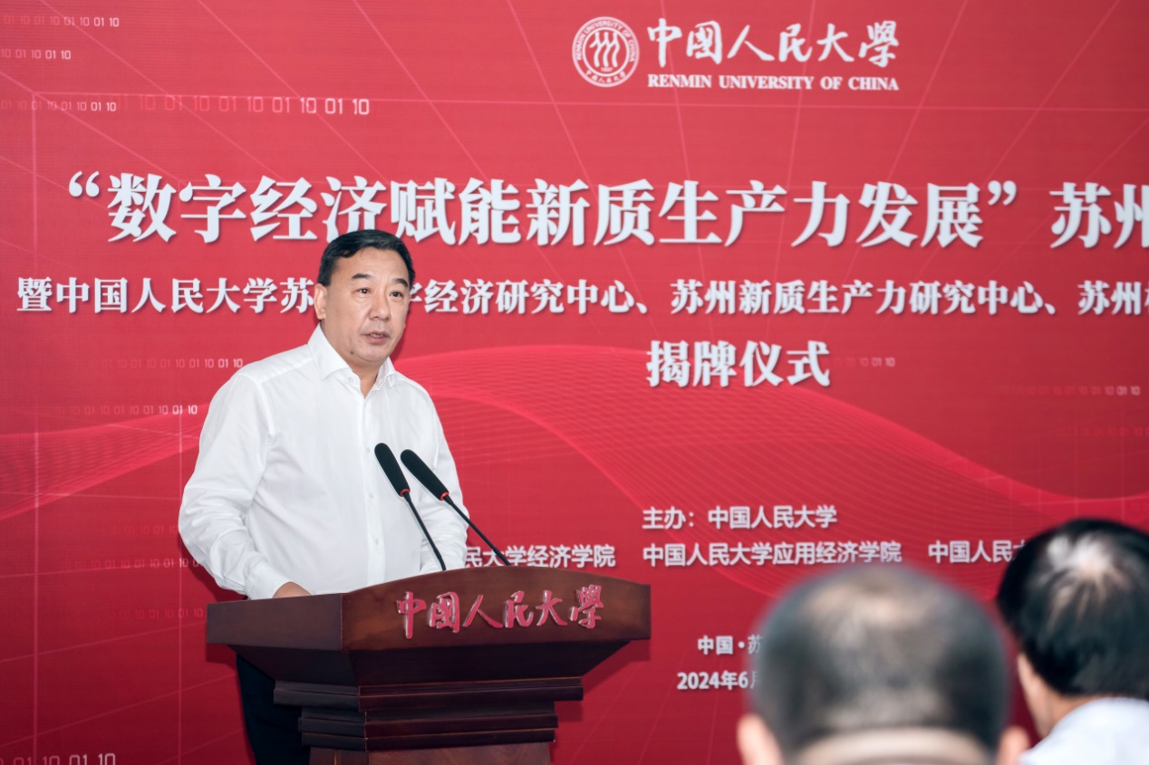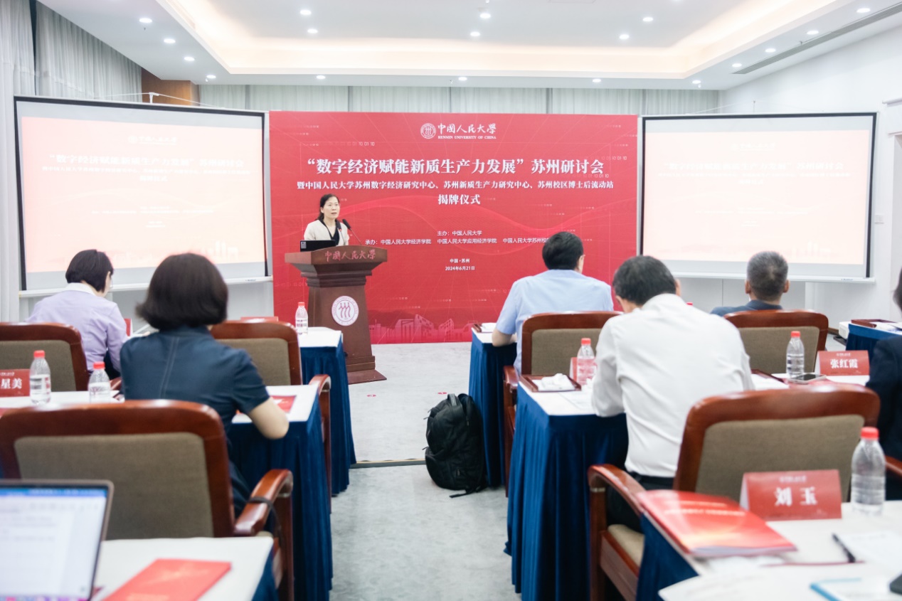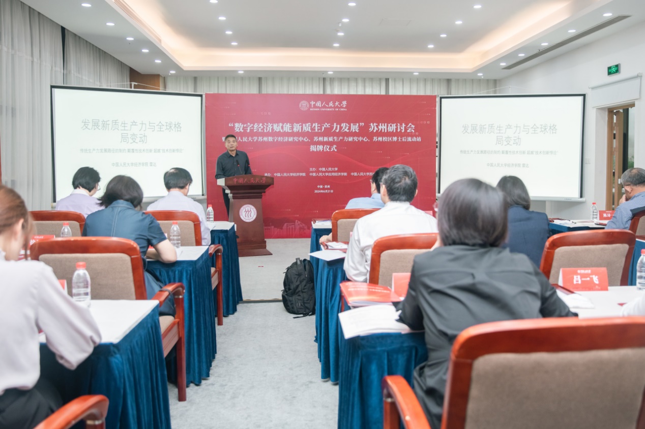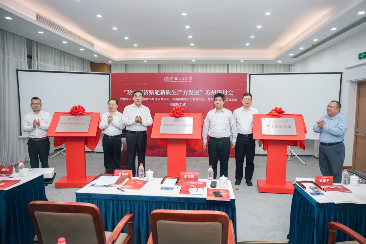 为积极响应即将召开的二十届三中全会,因地制宜加快发展新质生产力,6月21日,“数字经济赋能新质生产力发展”苏州研讨会暨中国人民大学苏州数字经济研究中心、苏州新质生产力研究中心、苏州校区博士后流动站揭牌仪式在中国人民大学苏州校区举办。