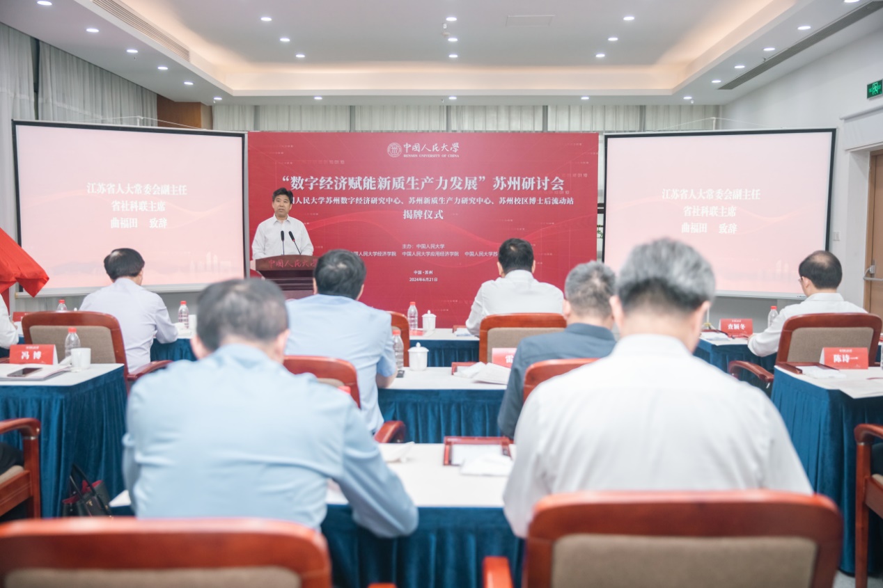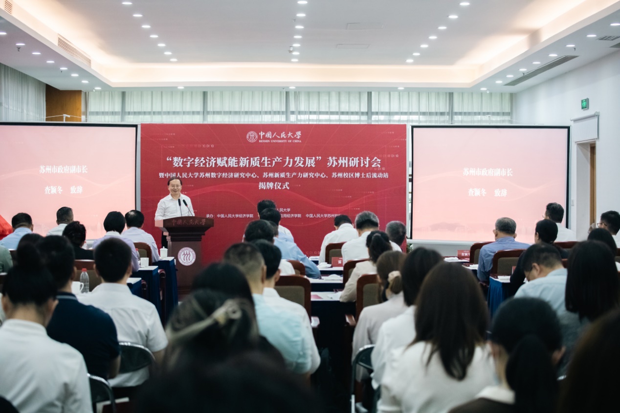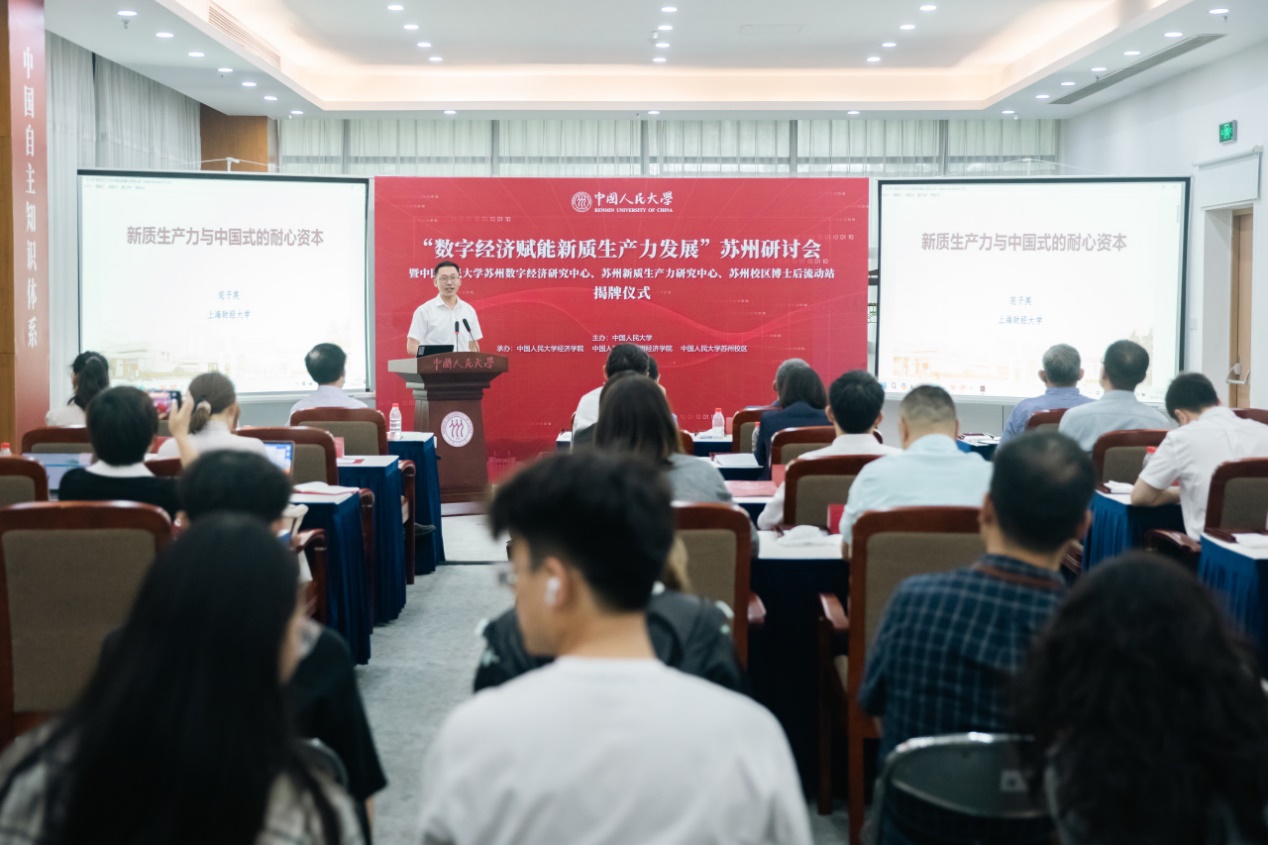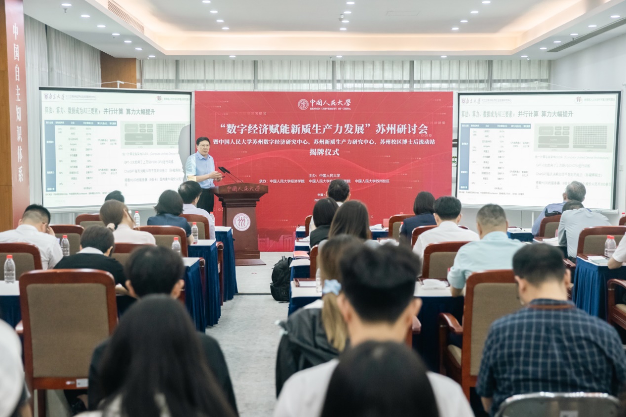 为积极响应即将召开的二十届三中全会,因地制宜加快发展新质生产力,6月21日,“数字经济赋能新质生产力发展”苏州研讨会暨中国人民大学苏州数字经济研究中心、苏州新质生产力研究中心、苏州校区博士后流动站揭牌仪式在中国人民大学苏州校区举办。