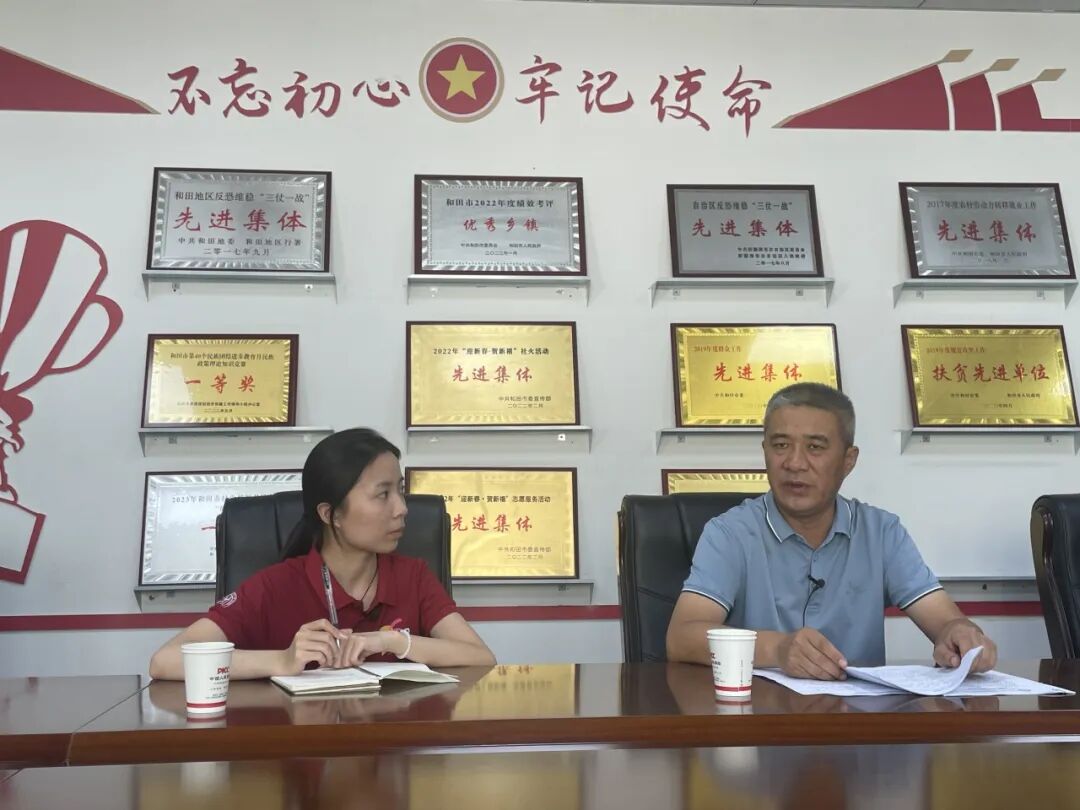 ▲探花视频 硕士生黄欣欣访谈和田市拉斯奎镇党委书记、党校校长姚德峰